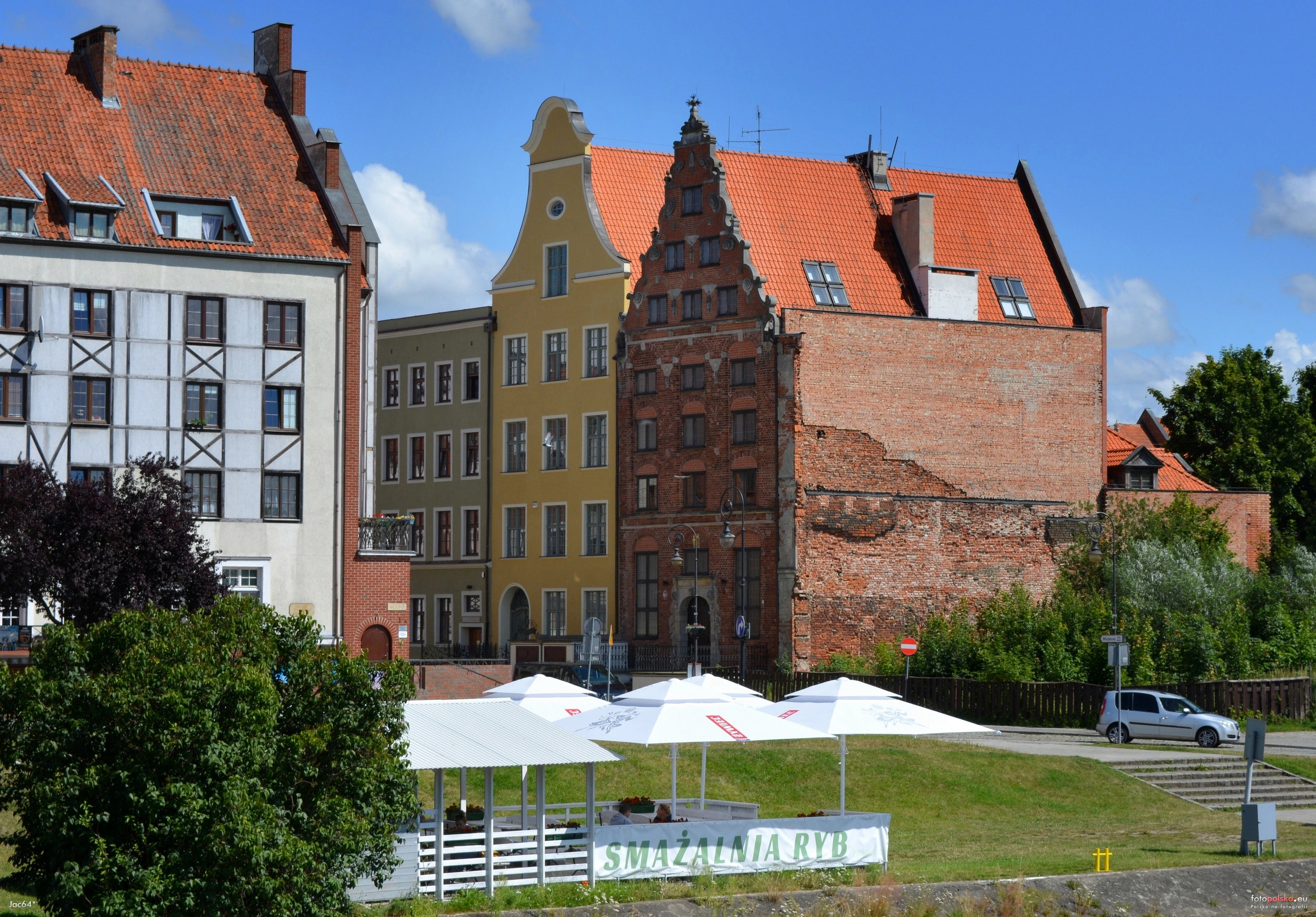2 pobrania 113 odsłon 6 średnia ocen Poprzednie i następne zdjęcia Jac64 Obiekty widoczne na zdjęciu Świętego Ducha 3 więcej zdjęć (29) Atrakcja turystyczna Zbudowano: 1647 Dawniej: Jerominsche Brauerei, Ulrichsche Brauerei, Städtisches Museum (Muzeum Miejskie), Sala Ślubów Zabytek: 189/N z 28.12.1961 Prawdopodobnie ze względu na łatwy dostęp do bieżącej wody, kamienice położone na działkach graniczących z Kumielą zamieszkiwali browarnicy. Parter kamienicy nr 3 zajmowała olbrzymia sień o wysokości ok. 5,3 m, szerokości 5,4 m i długości 14,8 m. Tak duża sień była wykorzystywana do produkcji piwa, ale także oznaczała wysoki status mieszkańców. W sieni było usytuowane palenisko z kominem oraz kocioł piwowarski, po przeciwnej stronie znajdowała się izba mieszkalna, a nad nią charakterystyczne wiszące izby. Wyższe pomieszczenia były wykorzystywane jako skład dla: chmielu, słodu, jęczmienia i innych surowców wykorzystywanych do produkcji piwa. Do kamienicy dobudowano piętrową przybudówkę. W 1640 roku kamienicę kupił browarnik Andreas Henning, który przebudował ją w stylu wczesnobarokowym w roku 1647, pozostawiając niezmieniony układ wnętrza. Ponownie przebudowano ją w 1740 roku, wewnątrz umieszczono stiukowe sufity. Funkcje browaru pełniła aż do początków wieku XX. W 1924 roku Muzeum Miejskie (Städtische Museum) kupiło kamienicę nr 4, a w 1928 roku nr 3. Przed udostępnieniem kamienic zwiedzającym, wykonano ich gruntowny remont. W kamienicy nr 3 wbudowano kominek "moru" z przełomu XVI i XVII wieku autorstwa Wilhelma van den Blocka, przedstawiający scenę epidemii z 1598 roku. Zrekonstruowano wnętrze domu mieszczańskiego z XVIII i XIX wieku. Wystawiano tu kolekcję mebli elbląskich, eksponaty archeologiczne i jubilerskie. Odbywały się wystawy rzeźby i malarstwa m.in.: Heinricha Splietha, Ernsta Kossola, Ernsta i Friedy Tiedke i Hansa Heuera. Muzeum często było odwiedzane przez wycieczki szkolne (odbywały się lekcje historii) jak i przez członków Towarzystwa Starożytności, którzy organizowali tutaj swoje zebrania. Świętego Ducha 4 więcej zdjęć (14) Zbudowano: XVIII w. Dawniej: Städtisches Museum (Muzeum Miejskie) Zabytek: 190/N z 28.12.1961 ul. św. Ducha więcej zdjęć (172) Dawniej: Heilig Geist Straße |