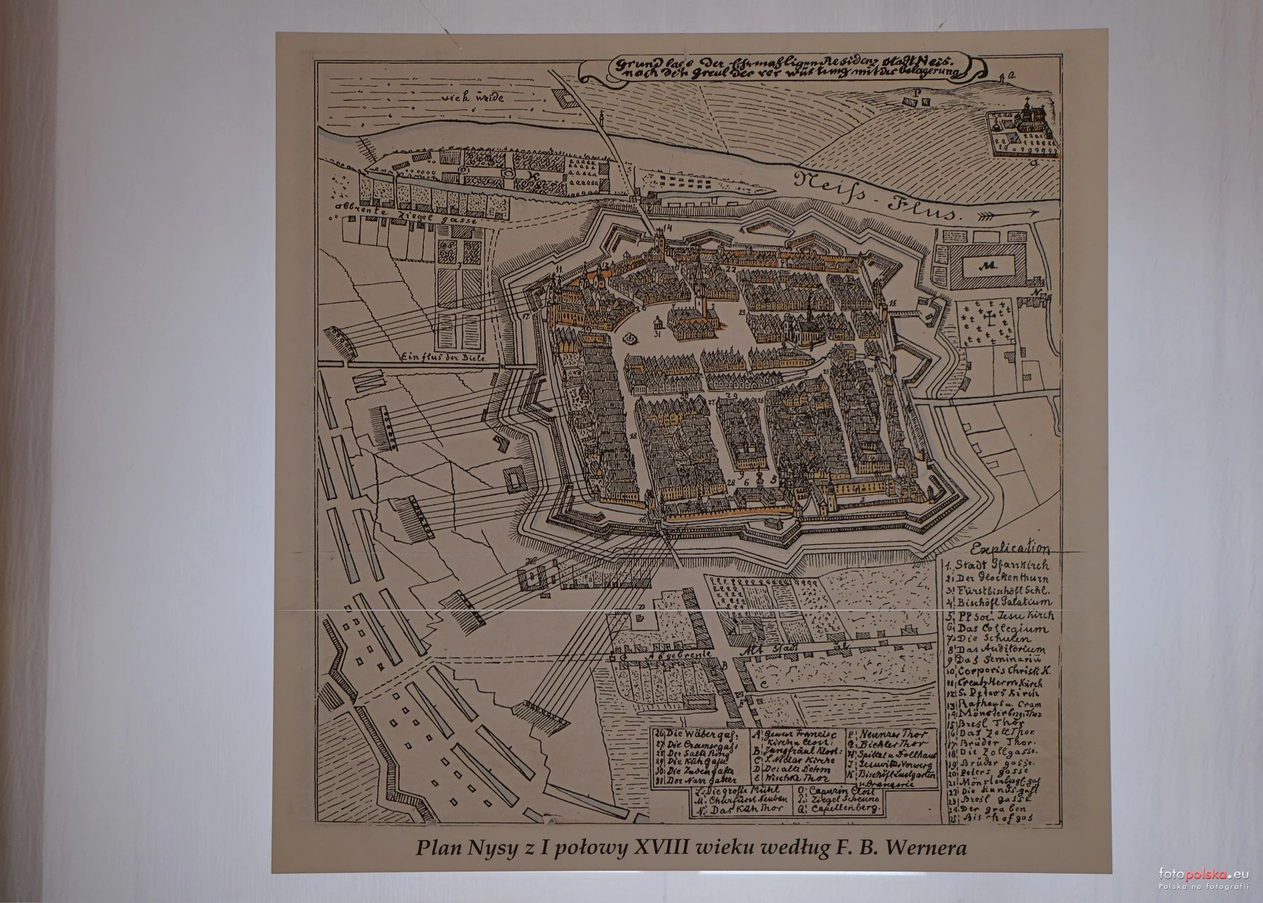 Lata 1740-1750 , Wnętrze muzeum w dawnym Pałacu Biskupim, na zdjęciu fragment ekspozycji na Ip. - plan Nysy z 1.poł. XVIII w. wg F.B. Wernera.Skomentuj zdjęcie |