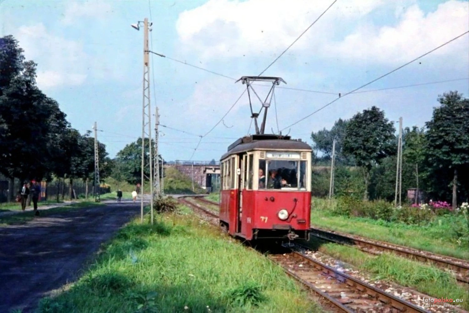 15 września 1974 , Odcinek torów tramwajowych pomiędzy Pomorską a Telefoniczną na terenach przylegających do ogródków działkowych. Widok w pobliżu wiaduktu kolejowego w kierunku Telefonicznej mniej więcej na poziomie posesji Pomorska nr 188 (budynek niewidoczny po lewej).Skomentuj zdjęcie
