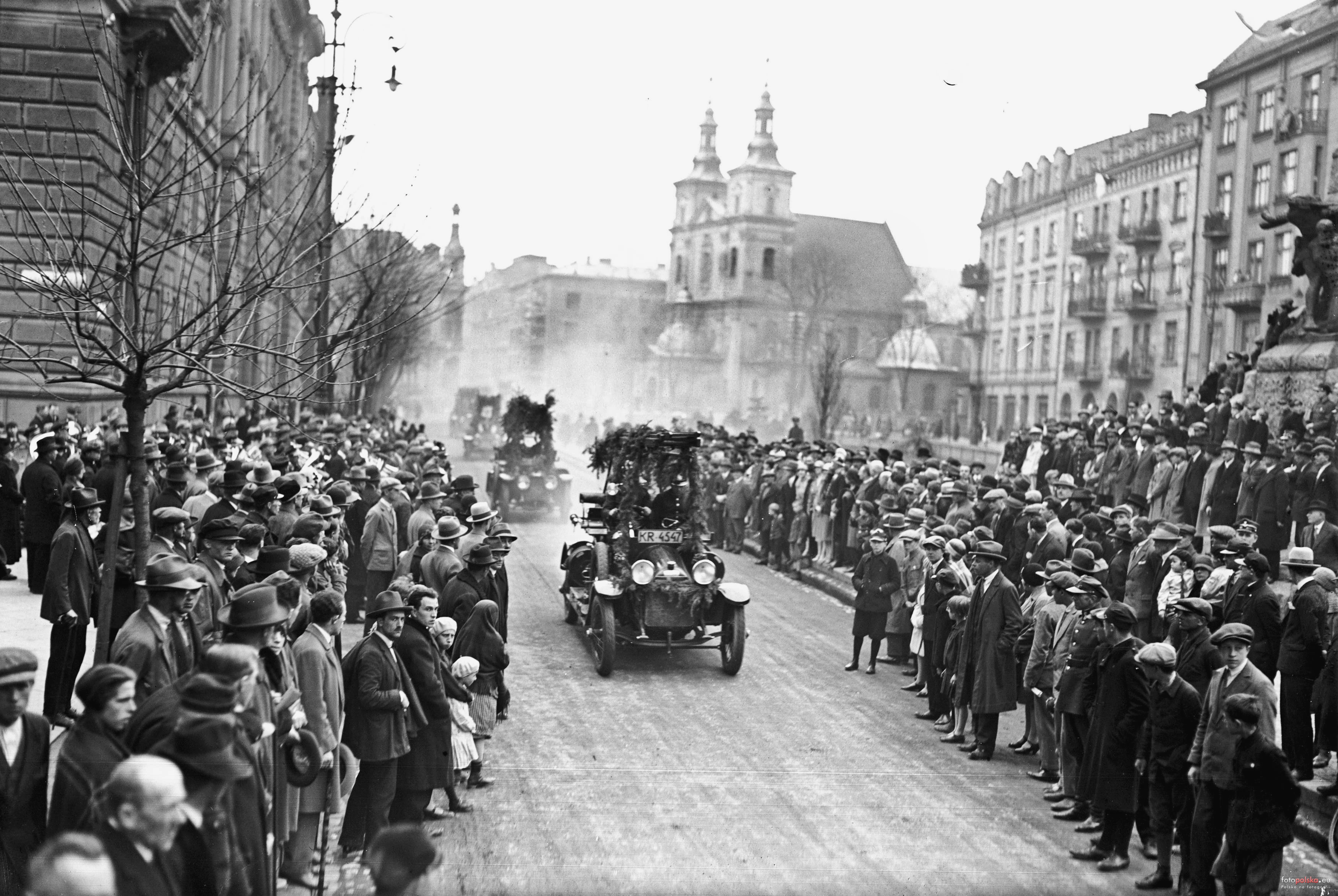 4 maja 1929 , Defilada zmotoryzowanych oddziałów strażackich na pl. Matejki. Po prawej - Pomnik Grunwaldzki, w tle - Kościół św. Floriana.Skomentuj zdjęcie |