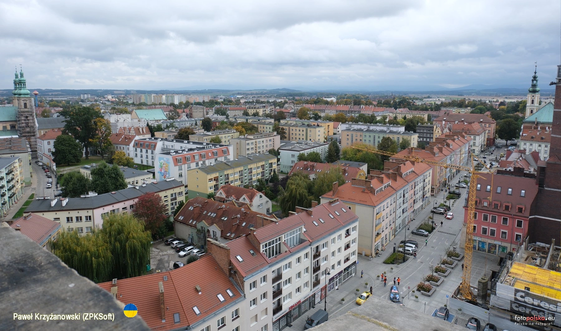 11 października 2025 , Widok z tarasu dzwonnicy bazyliki św. Jakuba i św. Agnieszki na nyski Rynek i sąsiednią południowo - wschodnią zabudowę.Skomentuj zdjęcie |