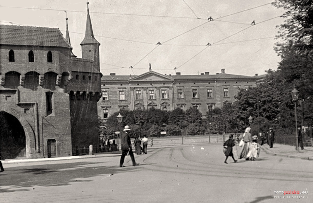 Lata 1900-1905 , Po lewej fragment Barbakanu, na drugim planie Hotel Centralny.Skomentuj zdjęcie |