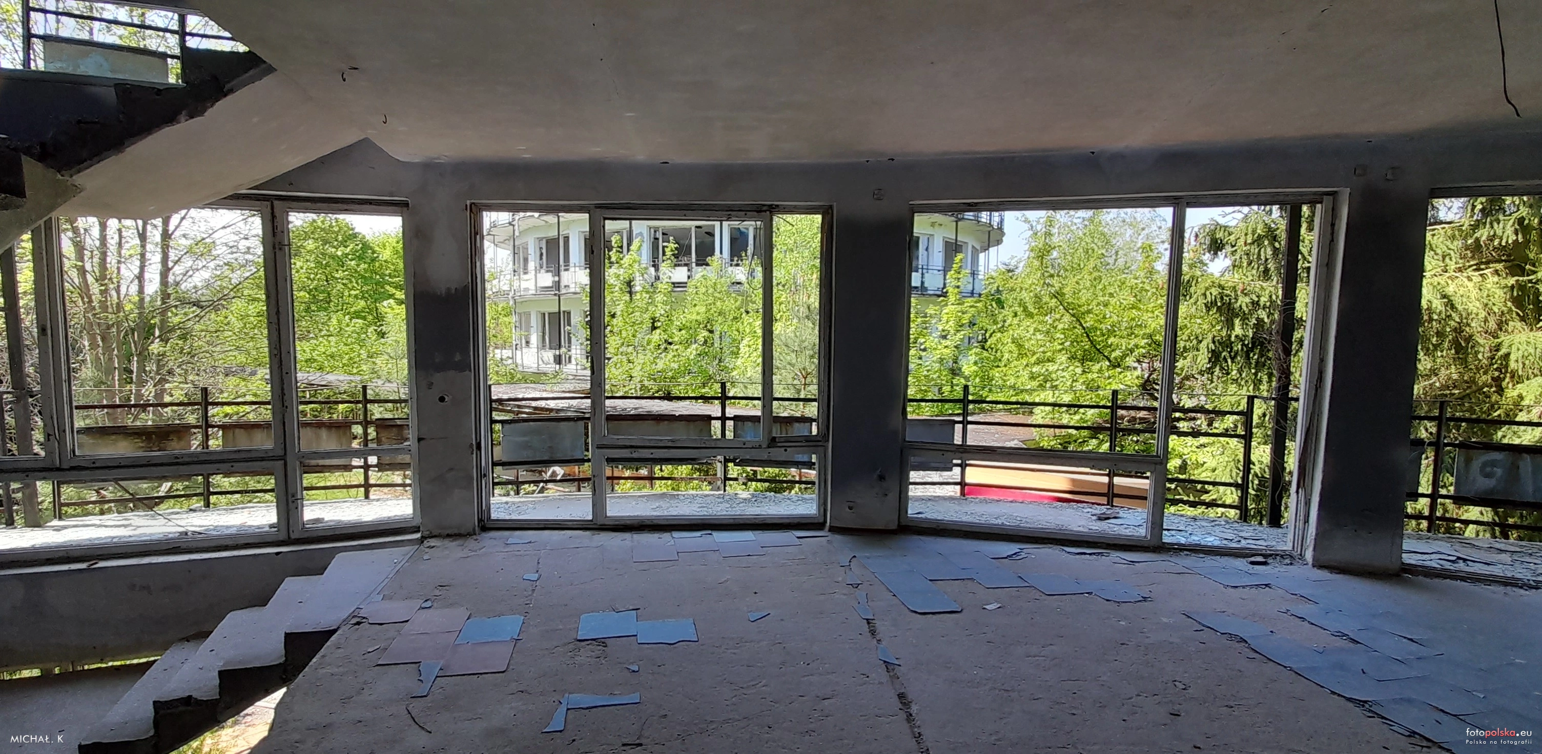 0 pobrań 127 odsłon 6 średnia ocen Poprzednie i następne zdjęcia Michał. K Obiekty widoczne na zdjęciu Ośrodek Wypoczynkowy "Lucień" więcej zdjęć (40) Zbudowano: 1975 Wybudowany w 1975 roku ośrodek wypoczynkowy Żyrardowskich Zakładów Przemysłu Lniarskiego. Plany budowy powstały już w roku 1972, gdyż zakład potrzebował kolejnych, dużo większych ośrodków wypoczynkowych niż te które posiadał w Zakopanem i Śliwinie ( ). Zakupiono działkę o powierzchni 7.81 ha i fragment lasu o powierzchni 3 ha, a Miastoprojekt w Koszalinie opracował w roku 1974 projekt nowoczesnego ośrodka. Wkrótce oddano do użytku zespół składający się z trzech dwupiętrowych pawilonów mieszkalnych (każdy ze 120 pokojami z łazienkami), piętrowego pawilonu recepcji i stołówki (pawilony te o charakterystycznej konstrukcji rotund) oraz kuchni połączonych ze sobą łącznikami (łączna powierzchnia ok. 7000 m2), piętrowego budynku socjalnego z sześcioma lokalami mieszkalnymi, boisk do piłki nożnej, siatkowej i koszykowej, dwóch kortów tenisowych, letniej stajni dla koni, placu zabaw, parkingu ze 150 miejscami postojowymi oraz pola namiotowego z zapleczem sanitarnym. „Okrąglaki" posiadały swoje nazwy - żółty, niebieski oraz zielony (kolor oznaczał standard). Każdy z budynków posiadał również inną tapetę, która znajdowała się na korytarzach i pokojach. Jako ciekawostkę dodam, że tapetami były materiały tekstylne produkowane w żyrardowskiej fabryce. Ośrodek nieprzerwanie funkcjonował pod szyldem właściciela, do 1990 roku. W latach 1990-2008 dzierżawiło go kilku najemców, którzy z czasem popadli w długi, a ośrodek został opuszczony. Swego czasu wystawiony na sprzedaż za 5000000 zł. Obecnie miejsce wypraw eksploratorów szukających atrakcji w zwiedzaniu opuszczonych miejsc. |