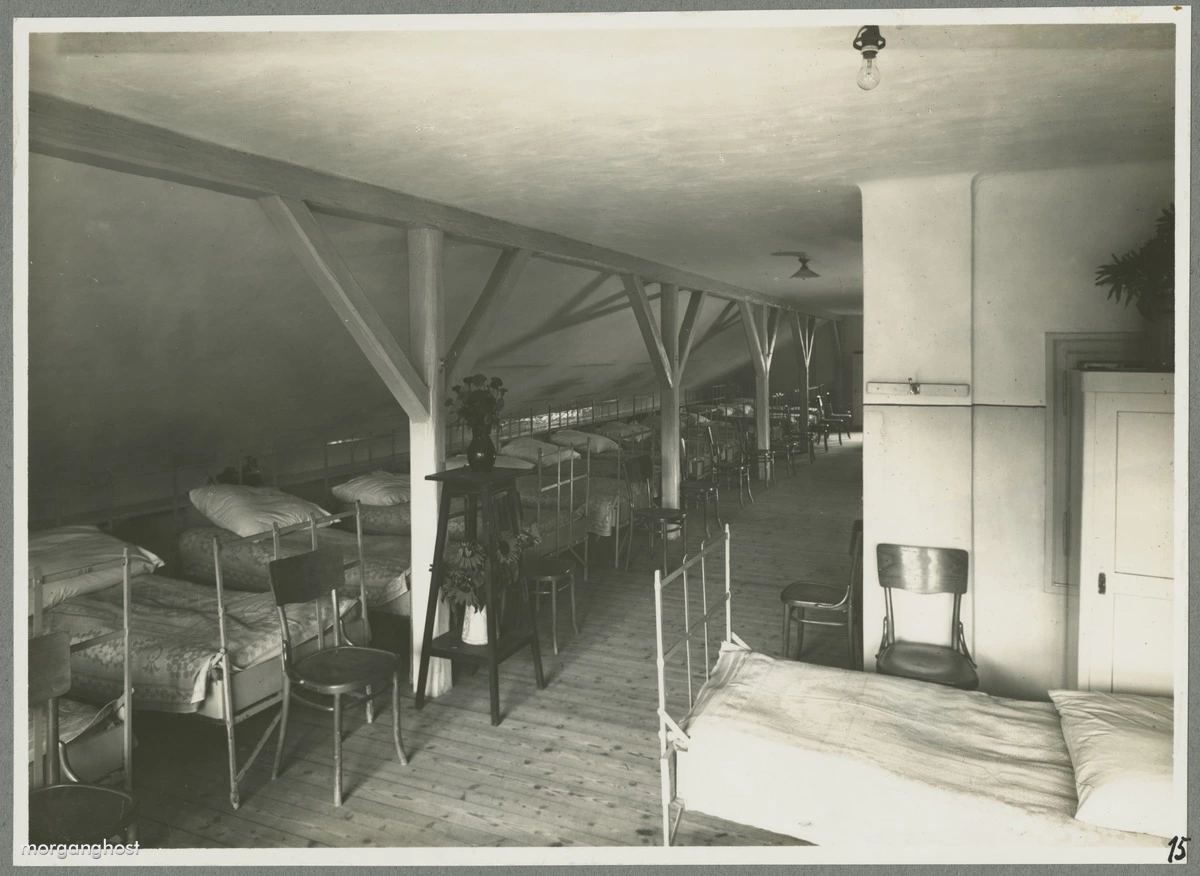 Lata 1930-1939 , Sypialna kolonistek na poddaszu Domu Zdrowia i Kolonii Wakacyjnej w HarbutowicachSkomentuj zdjęcie |