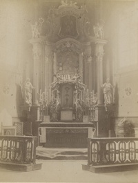 Lata 1890-1910 , Oporowo. Ołtarz główny kościoła pw. NPM Niepokalanie Poczętej. Datowanie przełom XIX/XX wieku