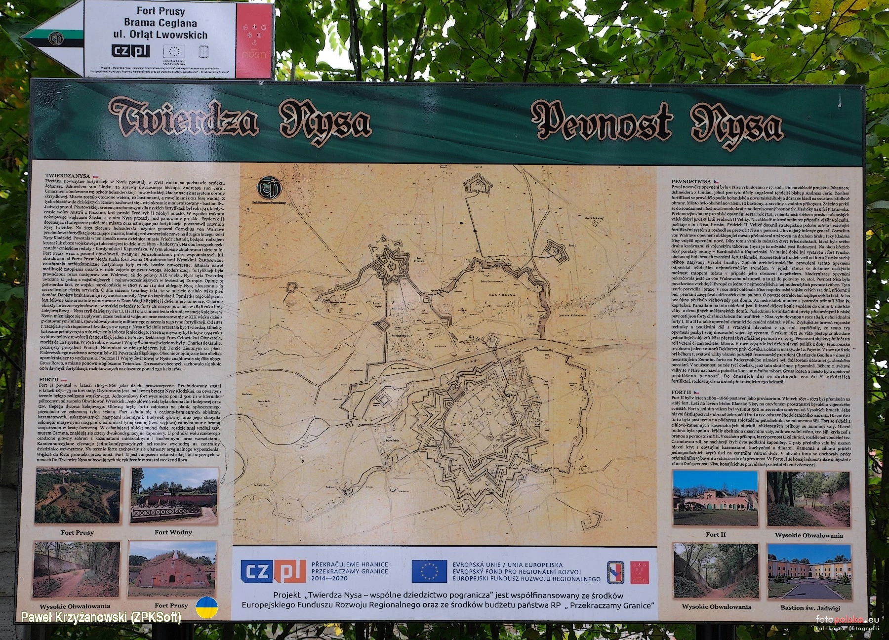 11 października 2025 , Fort II, zwany Regulickim zbudowano w latach 1865 - 1866 jako dzieło prowizoryczne. Przebudowany w latach 1871 - 1873. Jest fortem najbardziej wysuniętym na północ Nysy. Na zdjęciu tablica przy wejściu z planem całego założenia Twierdzy Nysa.Skomentuj zdjęcie |