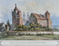 1851 , Część zamku i dzwonnica katedralnego kościoła w Płocku.Skomentuj zdjęcie |