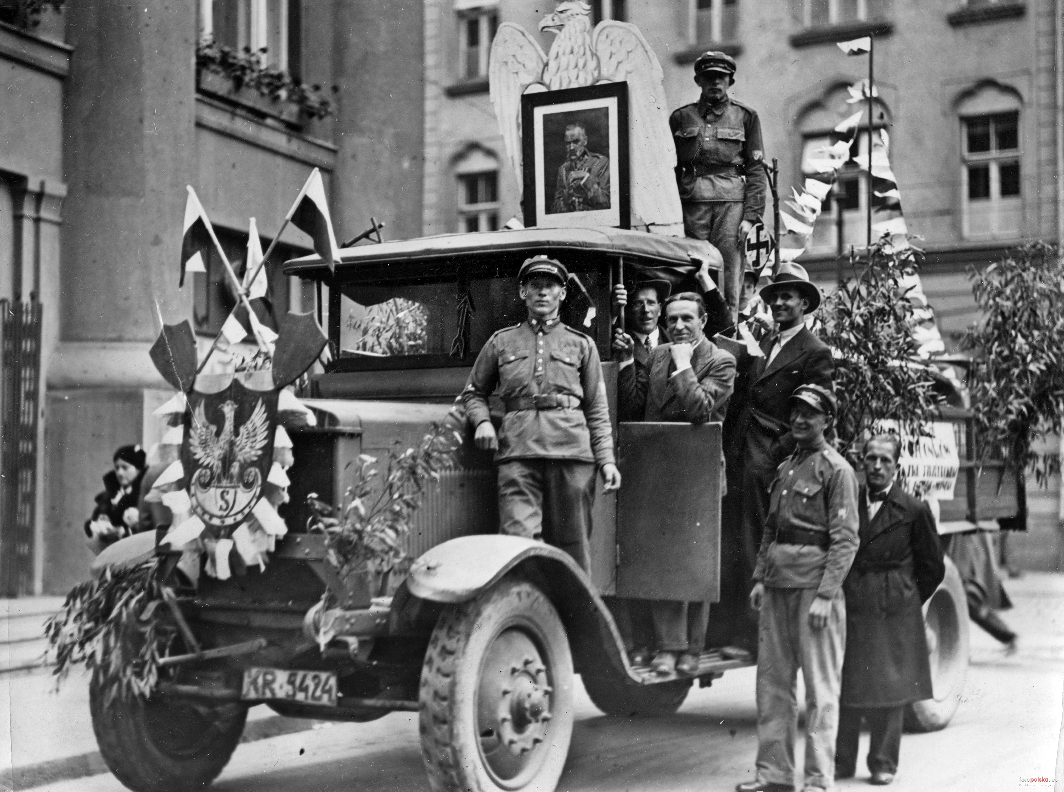 październik 1933 , Uroczystości związane z obchodami Tygodnia Związku Strzeleckiego przy Pałacu Prasy.Skomentuj zdjęcie
