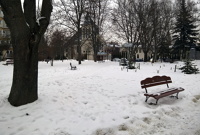 10 lutego 2026 , Skwer centralny, widok w kierunku Kościoła Błogosławionego Piotra Jerzego Frassatiego (w głębi).