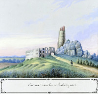 1 pobranie 179 odsłon 6 średnia ocen Poprzednie i następne zdjęcia polskup Obiekty widoczne na zdjęciu Zamek w Rabsztynie więcej zdjęć (222) Atrakcja turystyczna Zbudowano: XIV wiek Zlikwidowano: 1657 Zabytek: A-1292/82 z dn. 02-11-1982 Pierwsze pisemne potwierdzenie istnienia zamku pochodzi z końca XIV wieku i dotyczy zamkowego kapelana Grzegorza i burgrabiego rabsztyńskiego o imieniu Iwo. Dzięki badaniom archeologicznym wiemy, że pierwsze drewniane budynki warowni, znajdowały się na wapiennej skale już w XIII w. Zamek pełnił funkcję strażnicy granicznej z Czechami, chronił szlak handlowy z Krakowa do Wrocławia oraz był siedzibą starostów. Murowany obiekt w postaci tzw. „kamienicy” i wieży wybudowany został przypuszczalnie za panowania Kazimierza Wielkiego, jednak istnieją hipotezy, że zamek mógł powstać wcześniej. Pierwsze informacje o zamku pochodzą z lat 90. XIV wieku, gdy Władysław Jagiełło oddał zamek w dzierżawę Spytkowi II z Melsztyna herbu Leliwa. W 1412 roku na prośbę wojewody krakowskiego Jana z Tarnowa przebudowano zamkową wieżę i studnię. W rękach Leliwitów zwanych też Melsztyńskimi zamek pozostał do poł. XV wieku, będąc kolejno własnością Spytka III z Melsztyna. Spytek III Melsztyński zawiązał konfederację polskich husytów przeciw biskupowi krakowskiemu Zbigniewowi Oleśnickiemu. Po napadzie na obradującą w Nowym Korczynie radę królewską, został pokonany w bitwie pod Grotnikami, gdzie sam w 1439 roku poległ. Jego majątek wraz z zamkiem został skonfiskowany na rzecz władcy. Dzięki wstawiennictwu rycerstwa król Władysław Warneńczyk zwrócił zamek wdowie po Spytku – Beatrycze z Szamotuł, lecz już w formie starostwa (tenuty). Następnie zamek przeszedł w ręce jej wnuczki Jadwigi (córki Jana Melsztyńskiego), zwanej Jadwigą z Książa (Jadwiga Księska. Jadwiga w 1441 roku poślubiła Andrzeja Tęczyńskiego i w ten sposób zamek przeszedł w ręce rodu Tęczyńskich, którzy w 1442 r. na polecenie króla go wzmocnili, m.in przypuszczalnie nadbudowano wtedy wieżę o część ceglaną. Andrzej Tęczyński miał wejść w konflikt z mieszczanami krakowskimi, za pobicie płatnerza, który miał źle wykonać zamówioną przez Tęczyńskiego zbroję. Za udział w zabójstwie Andrzeja Tęczyńskiego sześciu rajców krakowskich zostało straconych, a trzech przebywało w lochu zamku rabsztyńskiego do czasu, aż Kraków wypłaci zadośćuczynienie za Andrzeja. W 1511 za sumę 4 tys. florenów zamek przejął podskarbi wielki koronny Andrzej z Kościelca. Już w 1515 roku zamek kupił pochodzący z Alzacji krakowski bankier Jan Boner i w ten sposób majątek znalazł się w rękach Bonerów, którzy przez cztery pokolenia sprawowali urząd starostów rabsztyńskich. W 1573 r. Seweryn Boner gościł na zamku króla Henryka Walezego. W 1587–88 podczas kampanii antyhabsburskiej dowódcą załogi był Gabriel (Hawryło) Hołubek, rotmistrz kozacki w służbie polskiej. Obronił on zamek przed atakiem rodziny Zborowskich (sprzymierzonych z Habsburgami), a następnie, z pomocą olkuskich górników, rozbił oddział wojskowy, idący w pomoc Maksymilianowi III Habsburgowi, oblegającemu Kraków. Po bezpotomnej śmierci Seweryna Bonera młodszego w 1592 roku, zamek stał się własnością kolejnego starosty, którym został Mikołaj Wolski, który na przełomie XVI i XVII wieku wybudował znacznych rozmiarów, późnorenesansowy pałac, na miejscu zamku dolnego. Przypuszcza się, że budowę mógł też prowadzić Zygmunt Gonzaga Myszkowski. Powstał wówczas dwuskrzydłowy budynek o trzech kondygnacjach, w którym było około 40 pomieszczeń. W czasie potopu wycofujące się w 1657 roku wojska szwedzkie spaliły zamek, co poświadcza lustracja z 1665 roku. Zamku już nie odbudowano. Częściowo był jeszcze używany do początków XVIII w., potem został opuszczony, a właściciele Rabsztyna przenieśli się do wybudowanego w XVIII w. dworku i folwarku, zlokalizowanego przy południowej stronie wzgórza zamkowego. Do 2 poł. XIX wieku istniała jeszcze wieża główna, będąca najstarszą częścią zamku. Źródło: Licencja: br />Źródło: Autorzy: Licencja: [ CC-BY-SA 3.0] |