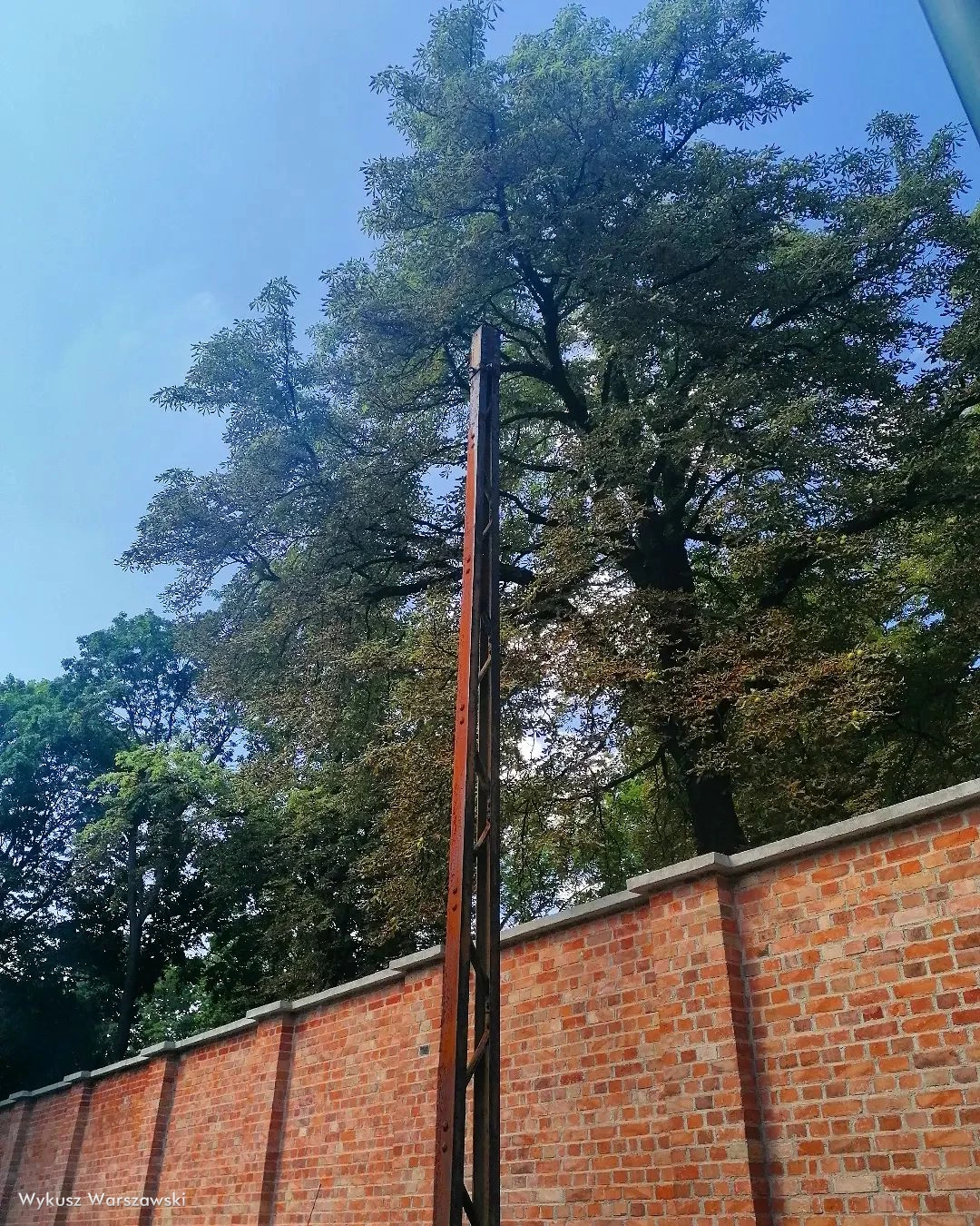 13 marca 2023 , Historia słupa - obok południowego muru najstarszej części cmentarza Powązkowskiego, przy ulicy Spokojnej do 2025 roku stał sobie samotny słup trakcji tramwajowej. Ktoś by rzekł - też mi atrakcja? Ale ja nie kojarzyłem żeby tą ulicą, która przed wojną też kończyła się ślepo kiedykolwiek jeździł tramwaj. Poszukałem w starych mapach, zdjęciach i nic. Żadnej linii tramwajowej. |