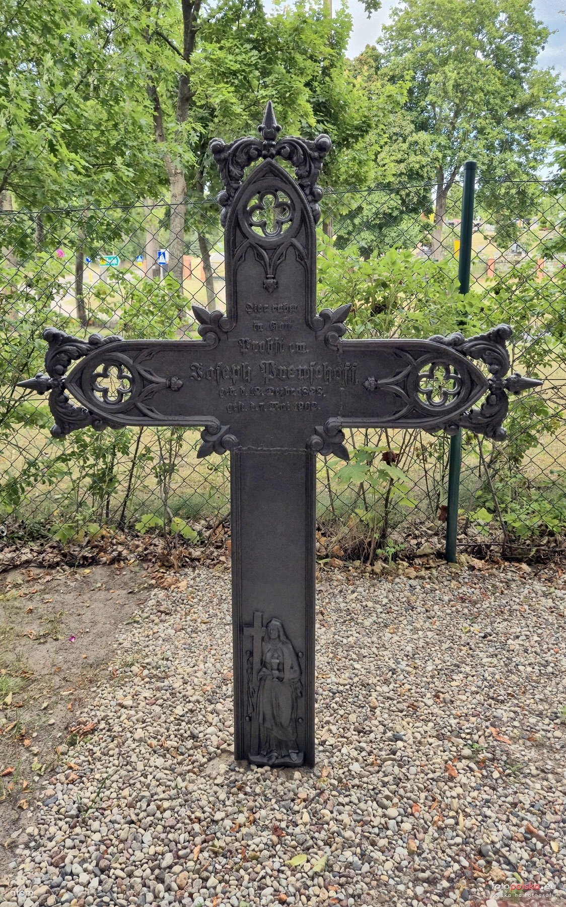 Opis pochodzi z tablicy informacyjnej przy lapidarium. Wikipedia podaje, że w tym miejscu znajdował się cmentarz, który zlikwidowano w latach 70. XX wieku.