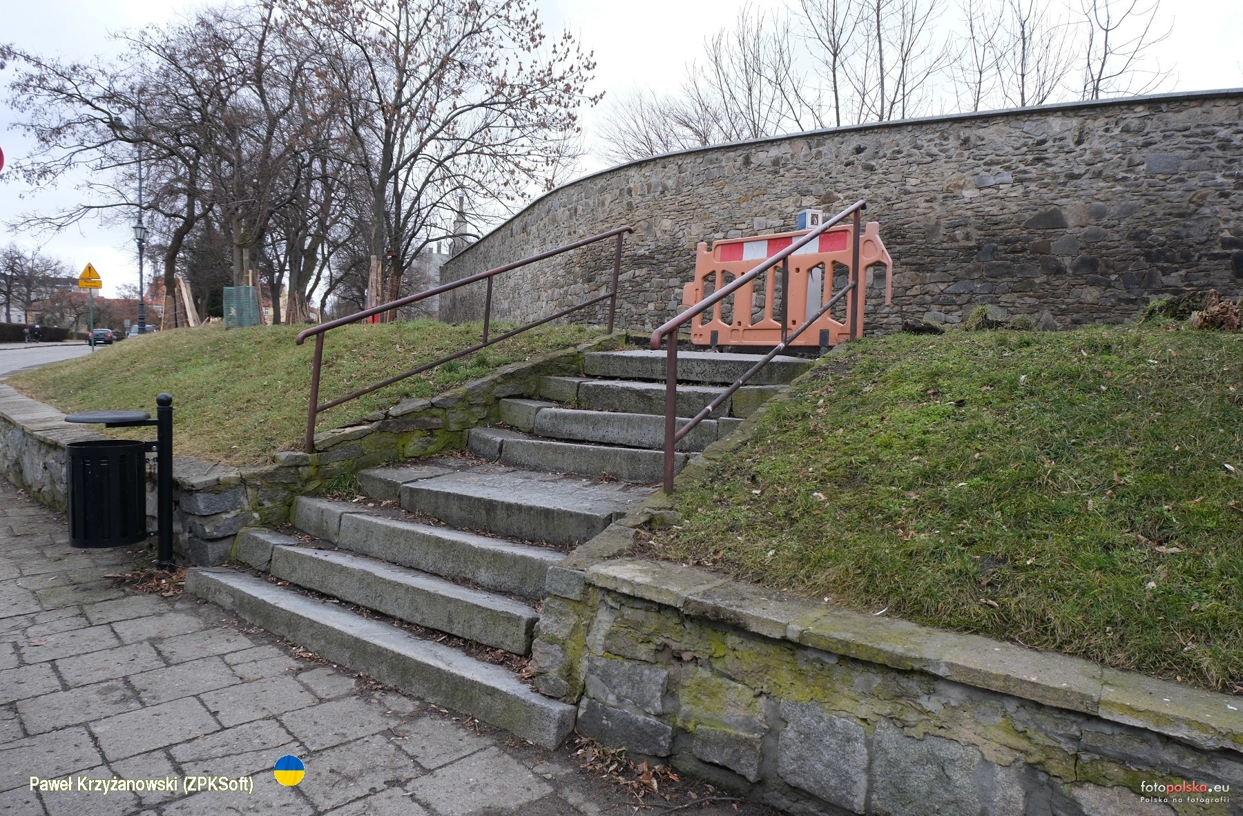 24 lutego 2026 , Rozpoczęła się rewitalizacja plant przy ulicy Pocztowej, wzdłuż dawnych murów miejskich. Prace obejmują m.in. przebudowę ścieżek pieszych, remont oświetlenia, przebudowę schodów, stworzenie ramp dla osób niepełnosprawnych, postawione zostaną ławki i kosze. Dojdzie też do remontu odcinka murów. Obszar znajduje się pod ścisłym nadzorem konserwatorskim. Inwestycja finansowana ze środków unijnych. Na zdjęciu stare schody na odcinku północnym.Skomentuj zdjęcie |