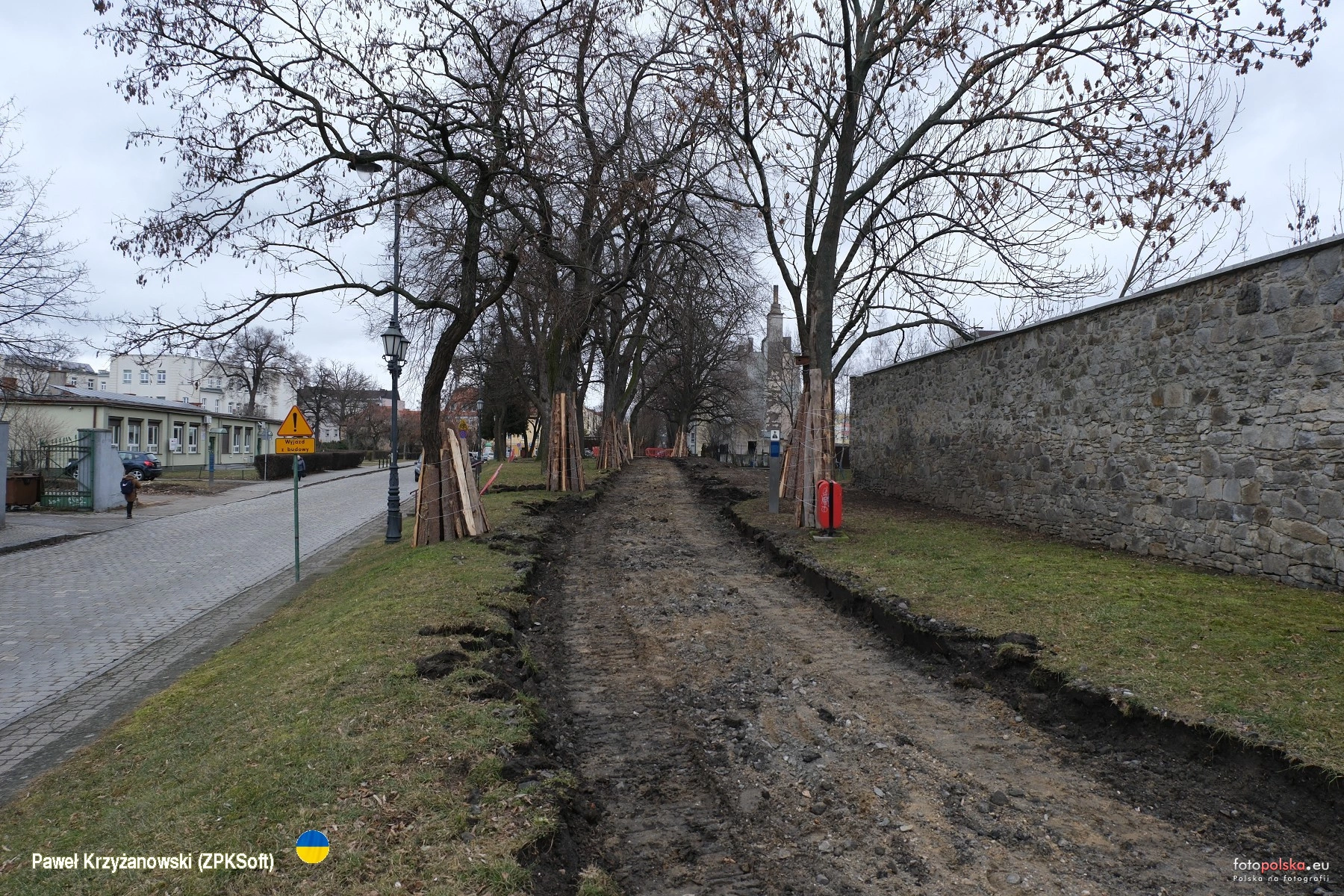 24 lutego 2026 , Rozpoczęła się rewitalizacja plant przy ulicy Pocztowej, wzdłuż dawnych murów miejskich. Prace obejmują m.in. przebudowę ścieżek pieszych, remont oświetlenia, przebudowę schodów, stworzenie ramp dla osób niepełnosprawnych, postawione zostaną ławki i kosze. Dojdzie tez do remontu odcinka murów. Obszar znajduje się pod ścisłym nadzorem konserwatorskim. Inwestycja finansowana ze środków unijnych. Na zdjęciu odcinek północny.Skomentuj zdjęcie |