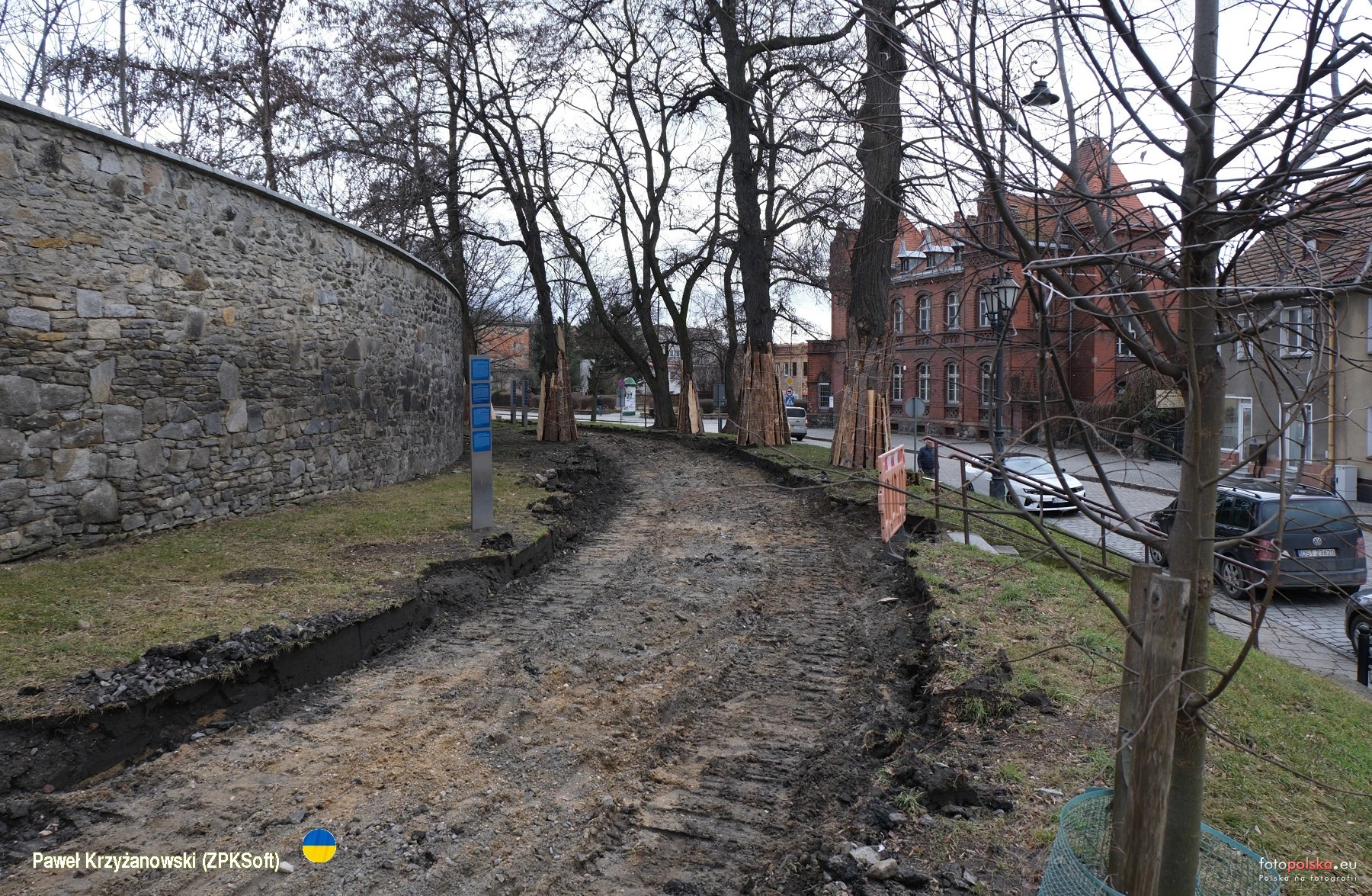 24 lutego 2026 , Rozpoczęła się rewitalizacja plant przy ulicy Pocztowej, wzdłuż dawnych murów miejskich. Prace obejmują m.in. przebudowę ścieżek pieszych, remont oświetlenia, przebudowę schodów, stworzenie ramp dla osób niepełnosprawnych, postawione zostaną ławki i kosze. Dojdzie tez do remontu odcinka murów. Obszar znajduje się pod ścisłym nadzorem konserwatorskim. Inwestycja finansowana ze środków unijnych. Na zdjęciu odcinek północny.Skomentuj zdjęcie |