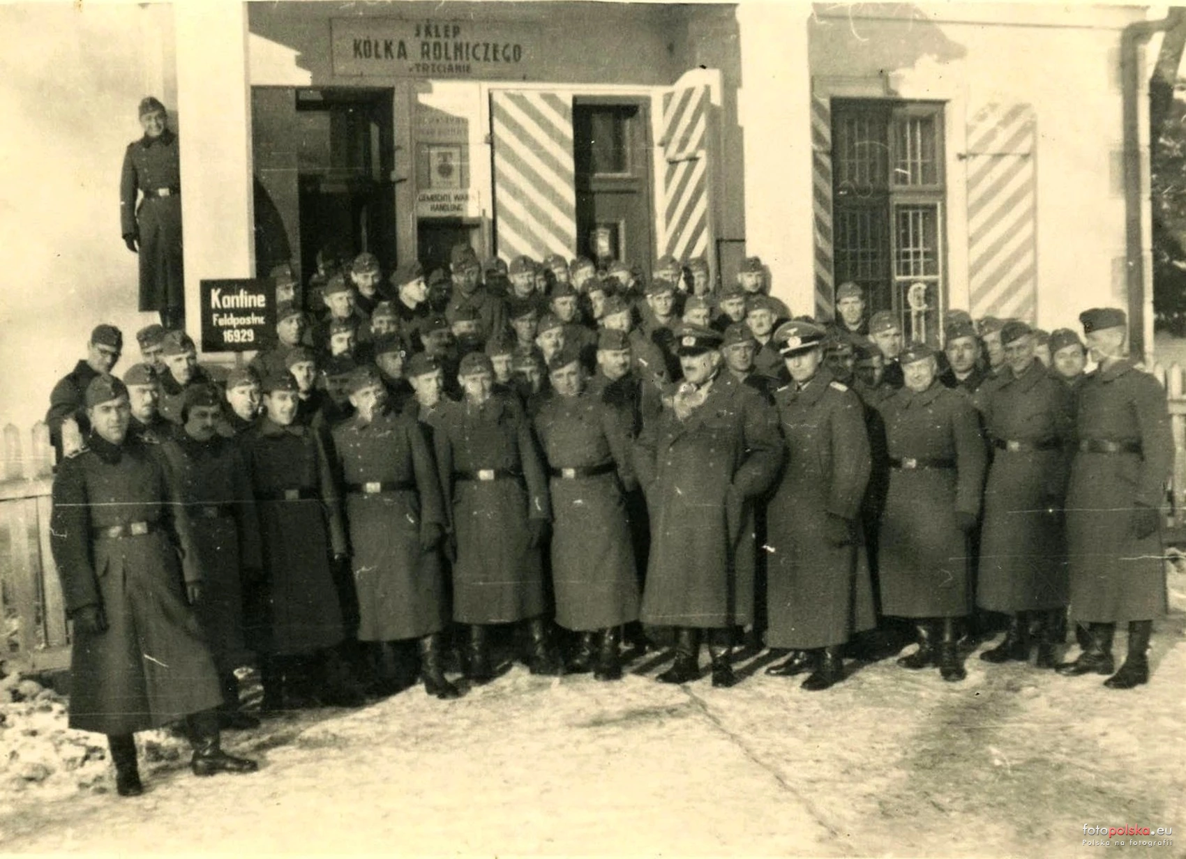 1941 , Sklep Kółka Rolniczego w Trzcianie. Poczta polowa nr 16929 należała do 1. Kompani, 484. Pułku Piechoty, wchodzącego w skład 254. Dywizji Piechoty. Przed uderzeniem na ZSRR stacjonowali w okolicach Trzciany koło Bochni.Skomentuj zdjęcie |