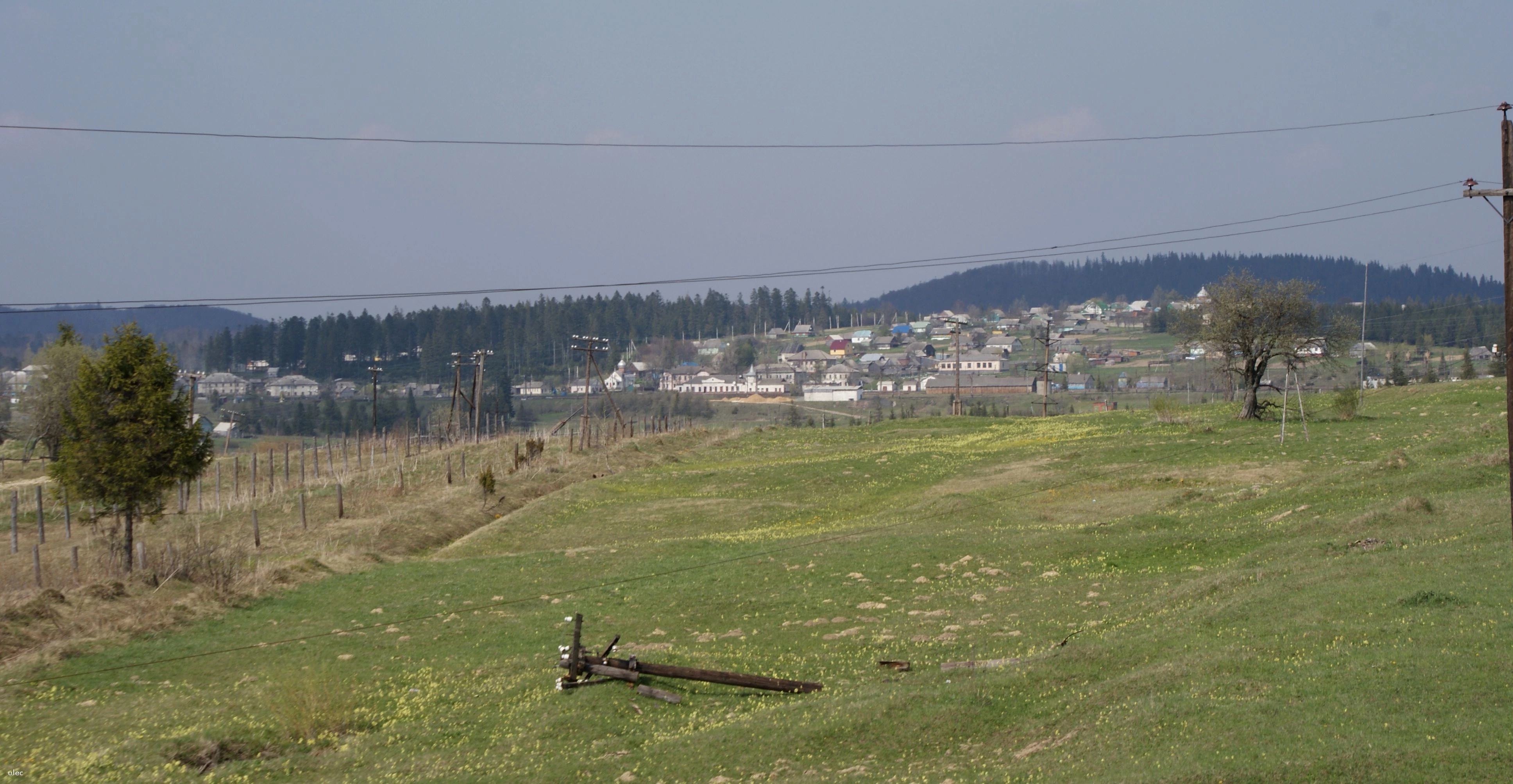 29 kwietnia 2009 , Panorama Sianek z pociągu jadącego na Zakarpacie. W środku kadru stacja kolejowa w Siankach.Skomentuj zdjęcie |