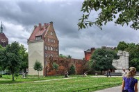 6 lipca 2009 , Pomnik "Tym co za Polskość Gdańska" po prawej, po lewej za dawnym murem miejskim budynek z adresem Szpitalna 4Skomentuj zdjęcie