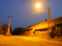 14 czerwca 2001 , Krzyż przydrożny i zabudowania gospodarcze w świetle lampy sodowej.Skomentuj zdjęcie