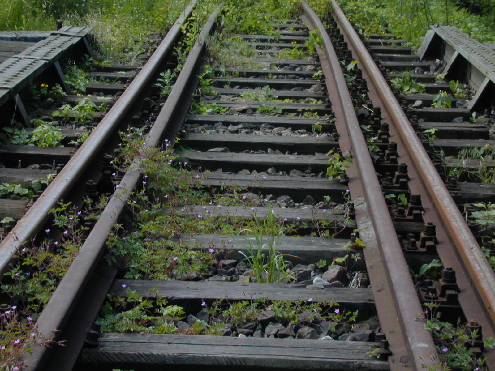30 czerwca 2001 , Tory na wiadukcie. Wschodnia nitka w kierunku Zajączkowa.Skomentuj zdjęcie |