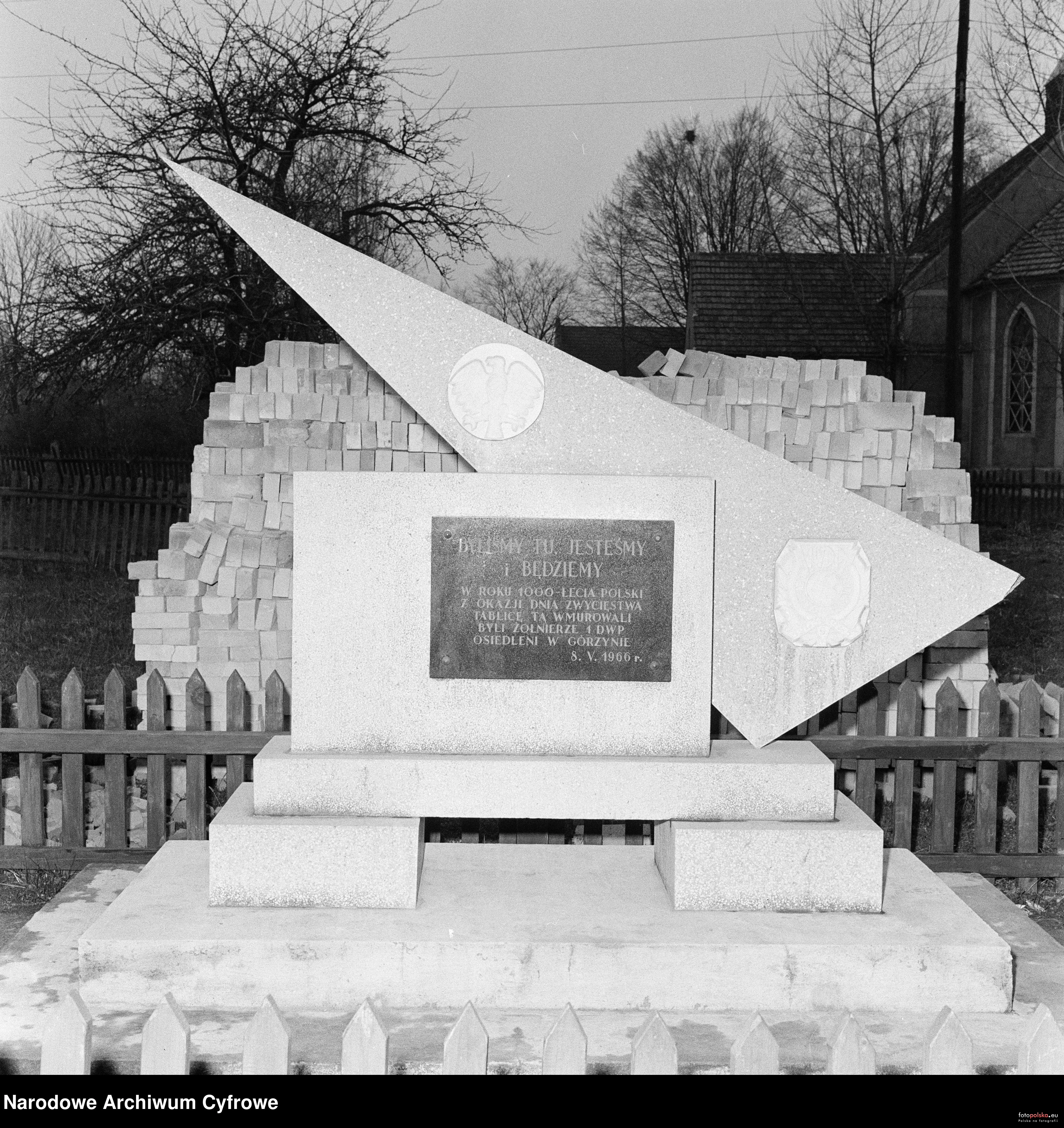 kwiecień 1971 , Górzyn powiat żarski, tablica ufundowana przez byłych żołnierzy 1 WDP, w tle kościół Niepokalanego Poczęcia NMPSkomentuj zdjęcie |