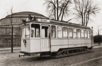 Lata 1925-1935 , Tramwaj linii 18 przed Halą Stulecia. Lata 20-30. Napis - Zimpel (Sępolno).Skomentuj zdjęcie