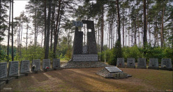 Pomnik w miejscu straceń z 1939. więcej zdjęć (2) Zbudowano: 1986 >Zbrodnia w Rudzkim Moście – seria masowych egzekucji przeprowadzonych przez okupantów niemieckich między 24 października a 11 listopada 1939 roku na uroczysku Rudzki Most w okolicach Tucholi.... W miejscu egzekucji nie wzniesiono początkowo pomnika, ograniczając się do postawienia krzyża oraz obramowania odnalezionych grobów. ... Przed głównym elementem pomnika leży tablica centralna z napisem: W tym lesie 24, 27, 30 października oraz 2, 6 i 10 listopada 1939 r. hitlerowcy dokonali masowego mordu Polaków, mieszkańców ziemi tucholskiej. ul. Pod Lasem więcej zdjęć (2) |