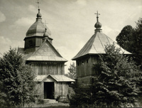 Cerkiew św. Mikołaja więcej zdjęć (25) Zbudowano: 1904-1906 Zabytek: A-139 z 29.05.1968 Cerkiew św. Mikołaja w Chmielu (obecnie kościół rzymskokatolicki pod tym samym wezwaniem) – greckokatolicka drewniana cerkiew, wzniesiona w roku 1906 we wsi Chmiel w miejscu wcześniejszej cerkwi. Budowę cerkwi rozpoczęto w roku 1904, a zakończono w 1906. Konsekrowana została w roku 1907. Po roku 1951 została opuszczona i służyła za magazyn Ochotniczej Straży Pożarnej. W roku 1968, podczas realizacji filmu Pan Wołodyjowski, Chmiel został wybrany na miejsce kręcenia scen pożaru Raszkowa. Uzyskano zgodę wojewódzkiego konserwatora zabytków w Rzeszowie na to, aby na potrzeby filmu spalić cerkiew. Doprowadziło to do silnych protestów środowisk konserwatorskich, na czele z Jerzym Szablowskim, dyrektorem Państwowych Zbiorów Sztuki na Wawelu, zakończonych rezygnacją z pomysłu[1]. W roku 1969 przejęta przez Kościół rzymskokatolicki, służy jako kościół filialny parafii w Dwerniku. Wyremontowana w latach 1970–77. Na cmentarzu cerkiewnym znajduje się kilka nagrobków z przełomu XIX i XX wieku oraz płyta nagrobna zawierająca inskrypcję w języku starocerkiewnym z roku 1644, która w tłumaczeniu na język polski brzmi: "Roku Bożego 1644, miesiąca lipca, dnia 17. Tu leży szlachetna Pani Feronia rodzona córka Pana Eustachego Dubianskiego a małżonka Pana Jana Orlickiego. Spoczywa tu w wierze, czeka daru, którym darem obiecane w niebie Królestwo". W kontuszu znajduje się herb rodu Orlickich oraz inicjały zmarłej. Nagrobki na cmentarzu zostały odnowione w roku 1987 siłami społecznymi. Źródło: Autorzy: Licencja: [ CC-BY-SA 3.0] |