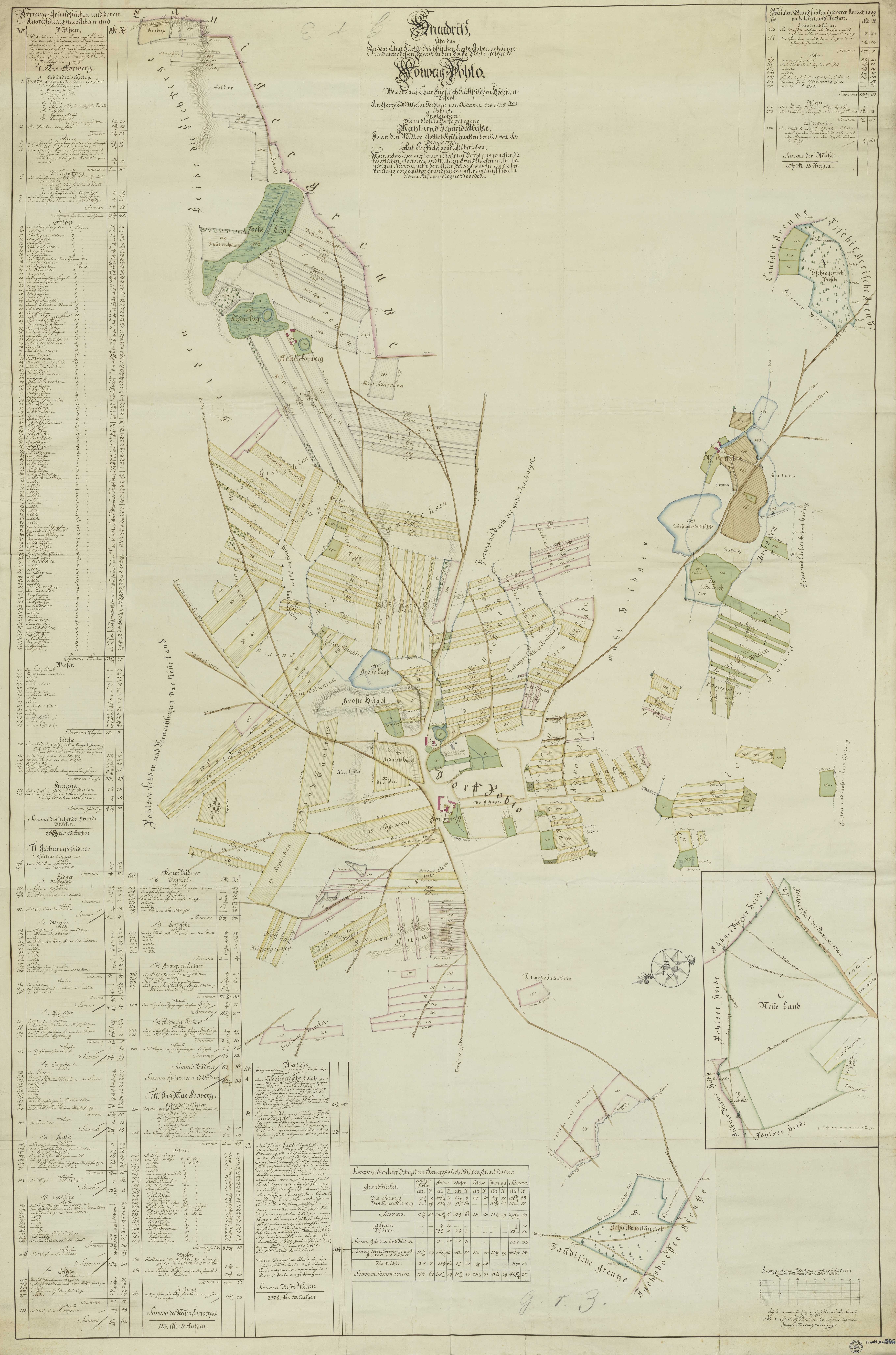 1776 , Mapa wsi Pohlo i okolic. Orientacja mapy: północ po lewej.Skomentuj zdjęcie |