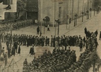 14 czerwca 1938 , W czwórkach i szóstkach ustawia się publiczność, pragnąca oddać cześć relikwią św. Andrzeja Boboli.Skomentuj zdjęcie |