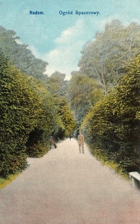 Park im. Tadeusza Kościuszki więcej zdjęć (86) Zbudowano: 1865-1877 Zabytek: 800/A z 14.10.1972 oraz 212/A/ Park Kościuszki urządzono w latach 1866-67 w związku z budową gmachu Komisji Województwa Sandomierskiego. Główną aleję wytyczono na osi prowadzącej od gmachu KWS w kierunku dzisiejszego kościoła katedralnego. Między alejami wprowadzono wg. angielskich założeń ogrodowych kręte ścieżki. Obsadzono go rzadkimi, starannie dobranymi gatunkami drzew. Do parku prowadziły trzy bramy z ulic (obecnych) Żeromskiego, Słowackiego i Sienkiewicza. Porządku pilnował struż, który dzwonkiem obwieszczał wieczorne zamknięcie bram. W latach 1870-75 w parku usypano niewielkie wzgórze, na którym wybudowano ruiny wieży zamkowej. We wrześniu 1909 r. otrzymał elektryczne oświetlenie. 23.03. 1916 r. w rocznicę przysięgi złożonej przez Tadeusz Kościuszkę na krakowskim rynku, na filarze bramy od ul. Sienkiewicza wmurowano tablicę pamiątkową i nadano parkowi imię Tadeusza Kościuszki. Wcześniej nazywany był Parkiem Anuczinowskim ( od nazwiska gubernatora Dmitrija Anuczina), Nowym Ogrodem, Ogrodem Saskim. W latach 20 –tych ubiegłego wieku postawiono w nim altanę oraz kawiarnię nazwaną później „Latona”. W czasie okupacji niemieckiej park dostępny był tylko dla Niemców. W lutym 1945 r. na terenie parku od strony ul. Żeromskiego pochowano 34 żołnierzy radzieckich poległych w walkach o wyzwolenie Radomia i ustawiono obelisk (w 1993 r. prochy i obelisk przeniesiono na cmentarz przy ul.Warszawskiej). W latach 50 –tych w pobliżu głównej alei wybudowano muszlę koncertową, która później spłonęła. W 1963 r. rozebrano bramy prowadzące do parku oraz ogrodzenie, potem także romantyczne ruiny wieży. W 2006 w pobliżu miejsca dawnego pochówku żołnierzy radzieckich odsłonięto pomnik Jana Kochanowskiego. W latach 2010 – 12 przeprowadzono rewitalizację parku. RafałT za „Encyklopedią Radomia” J.Sekulskiego Widokówki z Radomia więcej zdjęć (144) ul. Żeromskiego Stefana więcej zdjęć (1870) Dawniej: Lubelska |