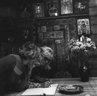 1968 , Fragment ekspozycji muzealnej. Zwiedzający w trakcie wpisywania się do księgi pamiątkowej.Skomentuj zdjęcie |