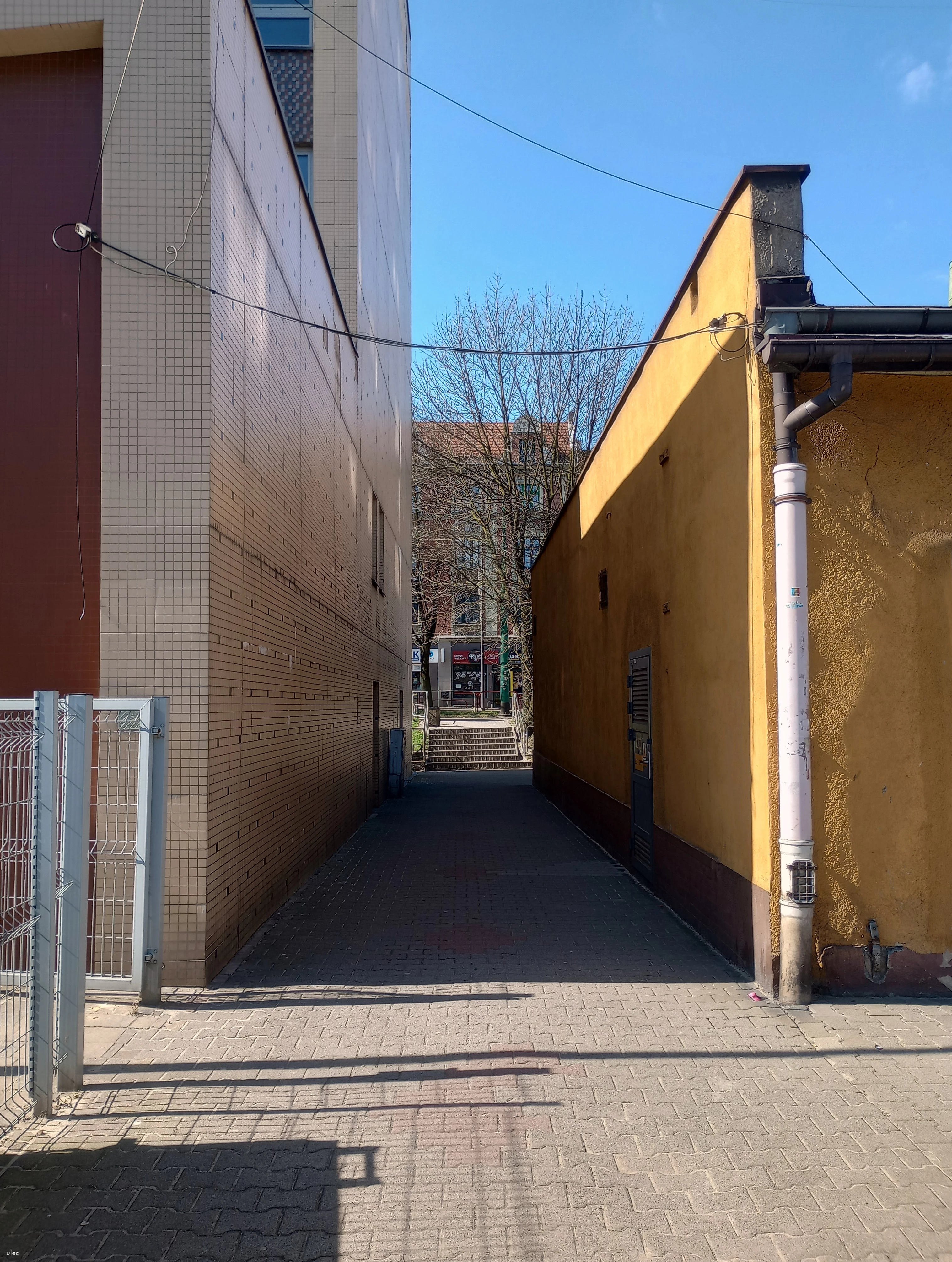 21 marca 2026 , Przejście między szkołą muzyczną (po lewej) a stacją trafo w stronę ul. Niedurnego.Skomentuj zdjęcie |