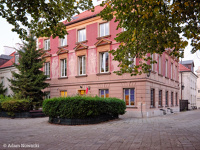 0 pobrań 43 odsłony 6 średnia ocen Poprzednie i następne zdjęcia Adam Nowacki Obiekty widoczne na zdjęciu Rynek Nowego Miasta 4 więcej zdjęć (11) Zbudowano: 1784 Dawniej: Kamienica Kajetana Jurkowskiego Kamienica Kajetana Jurkowskiego powstała w 1784. Należała do klasztoru redemptorystów i była wynajmowana komornikom. W 1816 kupił ją dr Franciszek Brandt, inicjatora Towarzystwa Lekarskiego w Warszawie i członka TPN. Później, w latach 1885-1900, mieściła znakomitą szkołę rzemieślniczą im. Michała Konarskiego, uczącą stolarstwa, ślusarstwa i tokarki. Mieściły się tu od 1888 znakomicie wyposażone warsztaty. Od 1936 umieszczono tu sierociniec dla dziewcząt im. Zofii Klawerowej. Wojnę budynek przetrwał nienaruszony, jednak po wojnie dodano pomiędzy oknami malowidła Bohdana Urbanowicza w czasie restauracji w latach1954-5, prowadzonej pod kierunkiem Włodzimierza Wapińskiego. Rynek Nowego Miasta więcej zdjęć (435) Plac w Warszawie położony pośrodku Nowego Miasta. Rynek powstał przed 1408. Początkowo miał kształt prostokąta o wymiarach 135 m na 120 m, a więc był prawie dwukrotnie większy od rynku staromiejskiego. Wtedy stały przy nim kościoły św. Jerzego i Najświętszej Marii Panny oraz ratusz z 1680, który został rozebrany w 1818. Rynek został zburzony w 1944, obecnie odbudowany, nawiązuje do budownictwa z przełomu XVIII i XIX wieku. Obecnie rynek ma nieforemny kształt, wyróżnia się także zróżnicowaniem poziomów. Na środku placu stoi studzienka żeliwna z II poł. XIX w. ustawiona tutaj w 1958, na której szczycie przedstawiony jest herb Nowej Warszawy - panna z jednorożcem. Z boku stoi bryła odbudowanego kościoła Sakramentek. Źródło: Licencja: |