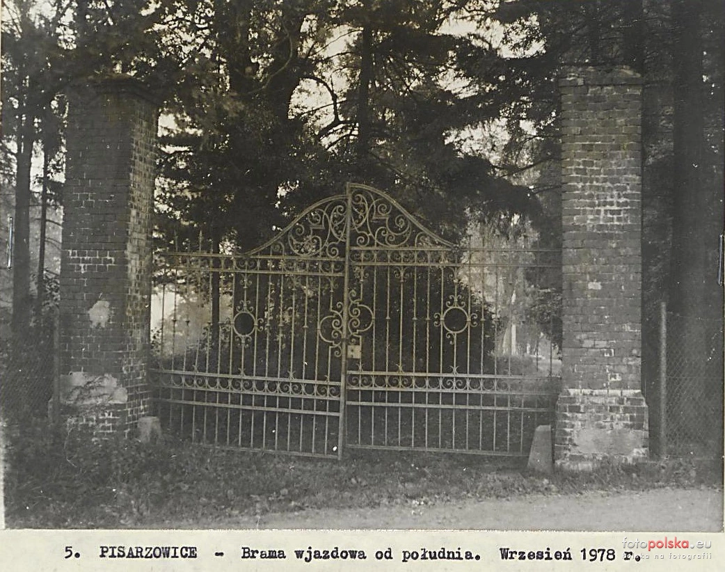 wrzesień 1978 , Brama wjazdowa na teren posesji. (Zdjęcie pochodzi z "Katalogu parków woj. jeleniogórskiego. Park Pisarzowice Środkowe )Skomentuj zdjęcie |