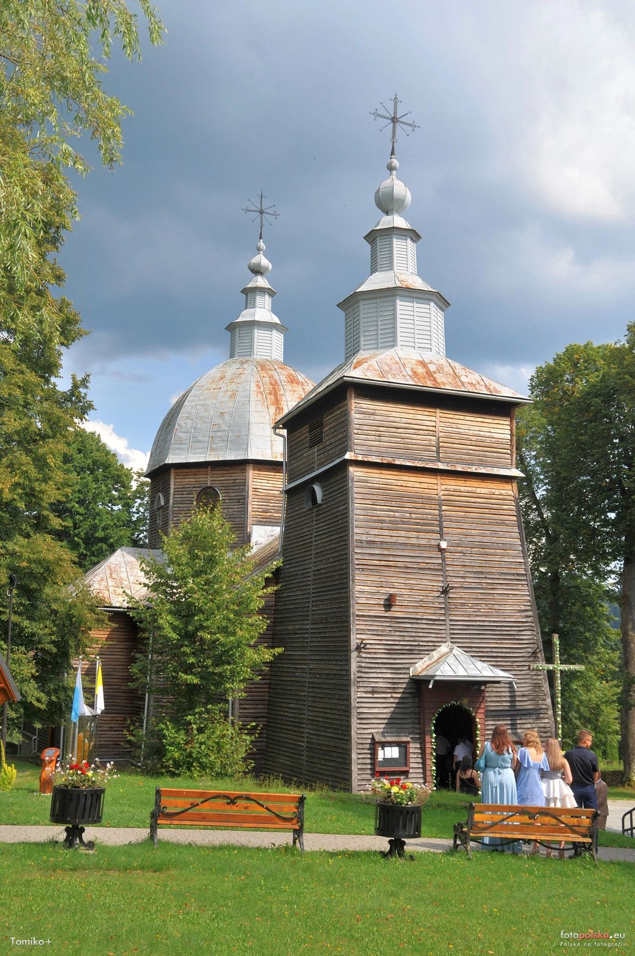 Do 1950 roku funkcjonowała jako parafia greckokatolicka. Na kościół rzymskokatolicki pw. Narodzenia Najświętszej Marii Panny przemianowano ją w roku 1951. Cerkiew wzniesiona została na planie krzyża z drzewa modrzewiowego. Jest to trójdzielny budynek o konstrukcji zrębowej, oszalowany i kryty blachą. Od frontu znajduje się wieża konstrukcji słupowo-ramowej o ścianach prostych, oraz prezbiterium. Wieńczą je ośmioboczne hełmy ze ślepymi latarniami i cebulastymi zwieńczeniami. Nad nawą widzimy kopułę na tamburze z wieżyczką i podwójnymi ślepymi latarniami.
