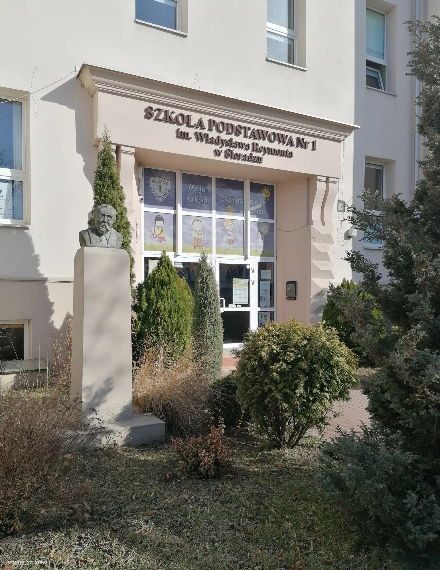 5 marca 2026 , Wejście do szkoły z popiersiem Reymonta.Skomentuj zdjęcie |