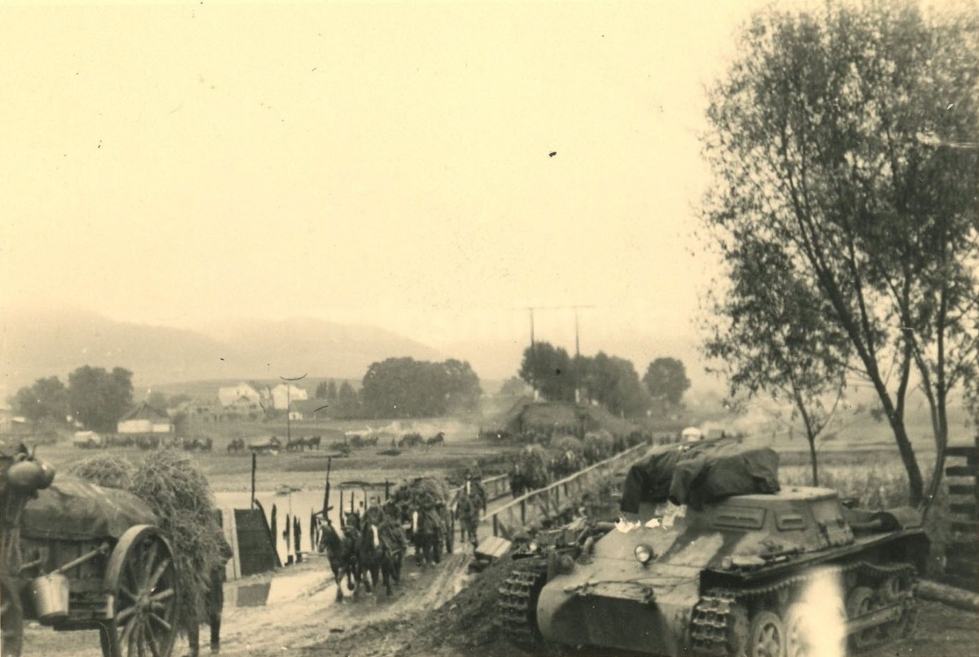 1939 , Sanok - Zdjęcie czołgu Panzer I zabezpieczającego most awaryjny |