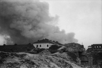 1943 , Dymy płonącego getta. Widok z ruin między Skórzaną, a Graniczną.Skomentuj zdjęcie |