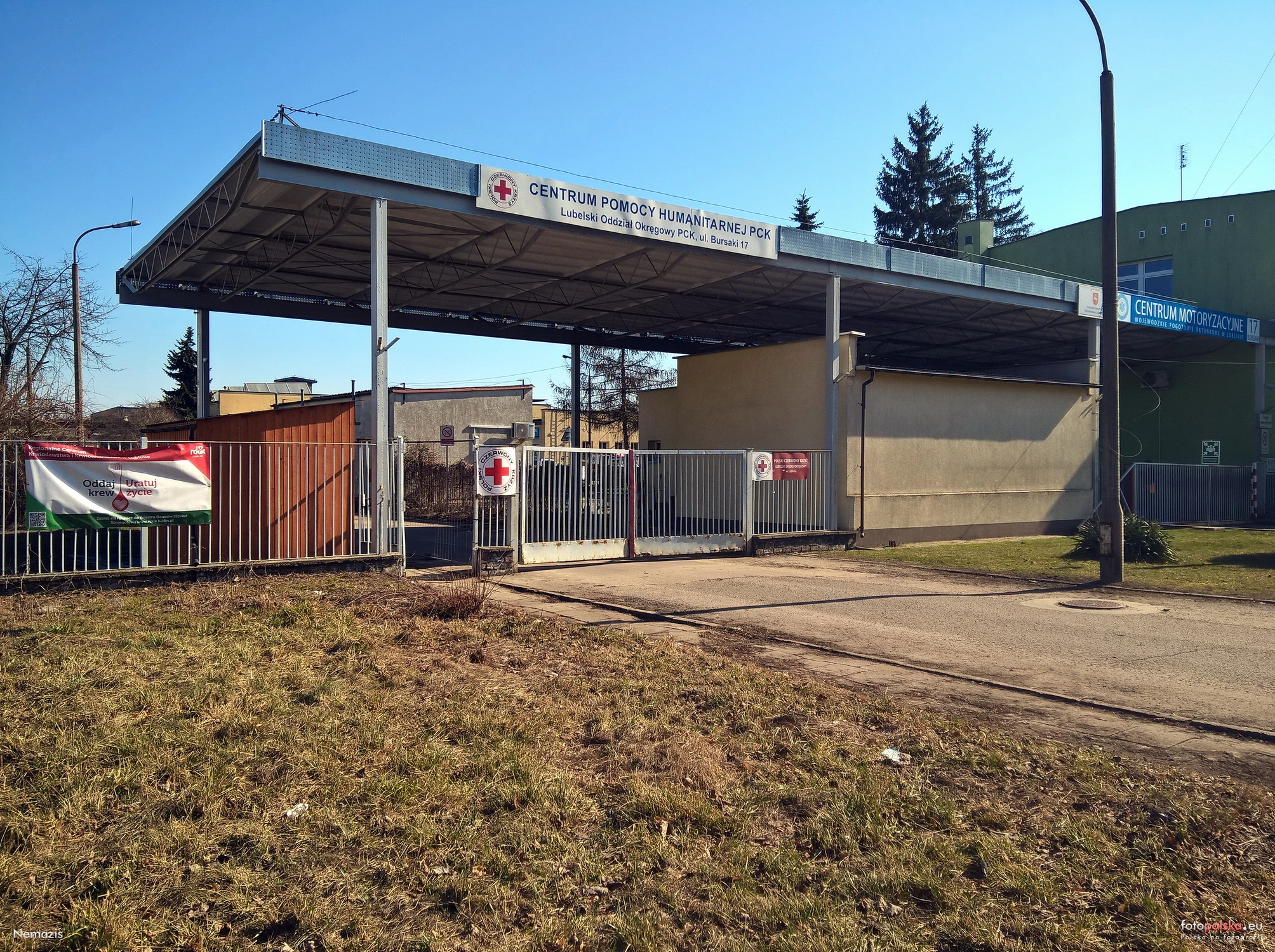 15 marca 2026 , Brama wjazdowa na teren posesji ul. Bursaki 17A Lubelskiego Oddziału Okręgowego PCK w Lublinie. Z prawej pod zadaszeniem budynek dawnej portierni/biura przepustek dawnej Wojewódzkiej Kolumny Transportu Sanitarnego Lublin obecnie Wojewódzkie Pogotowie Ratunkowe Samodzielny Publiczny Zakład Opieki Zdrowotnej w Lublinie.Skomentuj zdjęcie |