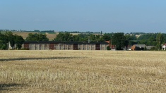 , Widok na wioskę od zachodu, od strony wąwozu - głównie zabudowania dworskie