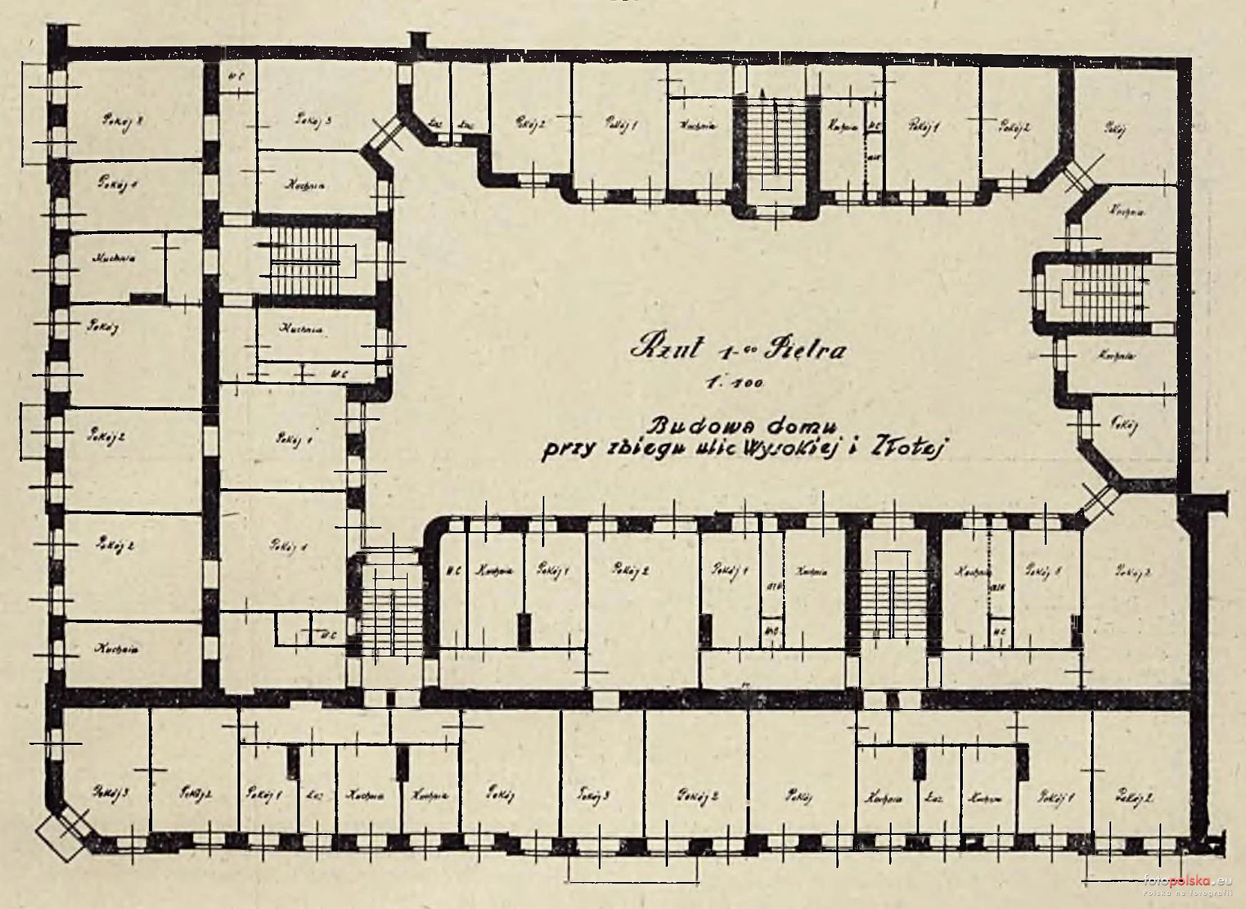 1928 , Rzut I piętra domu przy ul. Wysokiej 19 i Złotej 9. Źródło: Polski Przemysł Budowlany 1928 nr.3Skomentuj zdjęcie |