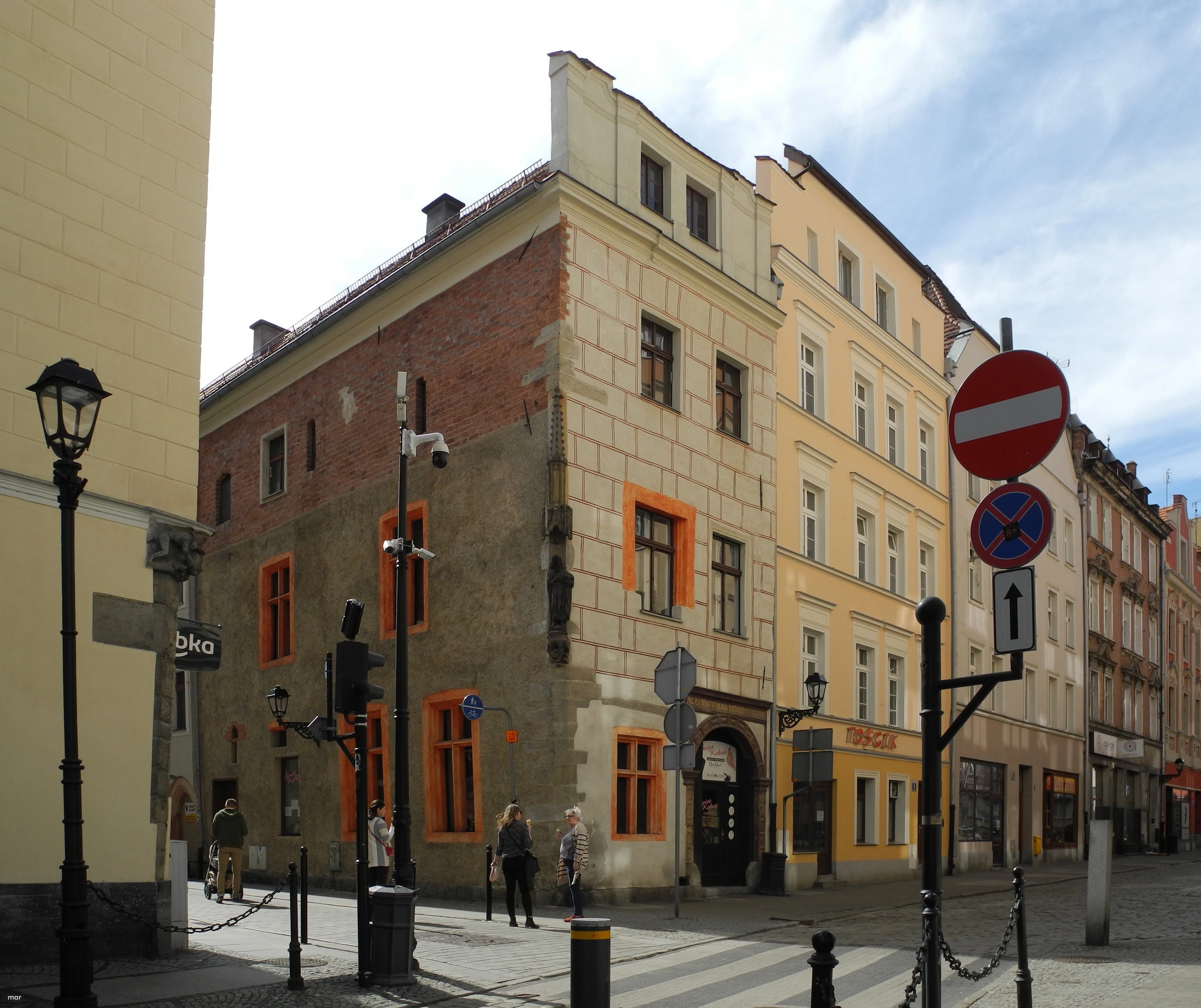 0 pobrań 38 odsłon 0 średnia ocen Poprzednie i następne zdjęcia mar Obiekty widoczne na zdjęciu Łukowa 2 więcej zdjęć (28) Atrakcja turystyczna Zbudowano: XIV-XVIII Zabytek: - Kamienica przy ulicy Łukowej 2 powstała w XIV wieku. Nazywana była Kamienicą pod Złotym Gryfem, od gotyckiej konsoli znajdującej się na narożniku budynku i przedstawiającej walkę młodzieńca z mitycznym stworem. Nad konsolą wznosi się kamienna sterczyna w formie baldachimu, zaś między nimi umieszczona została rzeżba św. Jana Chrzciciela. Obecnie na elewacji znajduje się jej kopia - oryginał od kilku lat jest w świdnickim muzeum. Remont elewacji kamienicy rozpoczęty w 2015 roku przyniósł nowe odkrycia zabytkowych detali. Kamienica ta powstała, podobnie jak większość innych na świdnickim starym mieście - najpierw w formie szachulcowego budynku postawionego nad sklepioną kamienną piwnicą pod koniec XIII wieku. Rozpoczęta w II połowie XIV wieku po jednym z pożarów miasta akcja murowania kamienic wiązała się jednocześnie z uregulowaniem ich linii zabudowy. Łukowa 2 była w tym czasie już wymurowana, gdyż wyznaczono ją jako wzór do przebiegu pierzei. Jak pokazały ostatnie badania: około 1375 roku postawiono ją jako murowaną, kamienno-ceglaną z dwoma piętrami i poddaszem. Kamienny parter i pierwsze piętro otynkowano, zaś ceglane drugie piętro pomalowano ochrą. Mimo różnic materiałowych całość powstała w jednym okresie. Na pierwszym piętrze i na parterze pomieszczenia doświetlane były dużymi oknami z granitowymi ościeżami i ślemieniami. Okna na drugim piętrze były mniejsze - szczelinowe. Od strony ulicy Kotlarskiej znajdował się ostrołuczny portal. Kamienica ta uległa znacznej przebudowie w XVI wieku. Najpierw podzielono ją na trzy trakty i wstawiono w sieni na parterze sklepienia. W środkowym trakcie wmurowano późnogotycki ostrołuczny portal prowadzący do piwnicy. Druga, poważniejsza przebudowa nastąpiła najprawdopodobniej po pożarze miasta w 1528 roku. Wtedy to zniszczony został szczyt oraz fragment elewacji od strony ulicy Kotlarskiej. Po odbudowie wstawiono nowy renesansowy portal, przebudowano szczyt, a całą elewację pomalowano w czerwone kwadry na białym tynku. Kolejna istotna przebudowa miała miejsce w XVIII wieku, kiedy to znów zniszczeniu uległ szczyt wraz z fragmentem elewacji od strony ul. Kotlarskiej. Odbudowano tę elewację do formy barokowej, zachowanej aż do ostatniego remontu. Renesansowy portal zlikwidowano, zachowując fragmenty pod tynkiem. Wyeksponowano je po remoncie w 1983r. Remont w latach 2015-2017 przywrócił gotyckie formy elewacji od strony ul. Łukowej. Zrekonstruowano kamienne ślemienia i częściowo opaski okienne. Uzupełniono gotycki tynk i wyeksponowano późnogotycki portal prowadzący do piwnicy. Od strony ul. Kotlarskiej odtworzonono portal renesansowy, a elewację pomalowano w kwadry, wykorzystując fragmenty zachowanego tynku z XVI wieku. Z fazy barokowej pozostał jedynie szczyt. Na podstawie: Maciej Małachowicz: "Kamienica pod Złotym Gryfem w Świdnicy", w: Kronika świdnicka 2015, Małgorzata Chorowska, Czesław Lasota: "Kamienica mieszczańska w Świdnicy: karczma i mieszkanie w XIII-XVIII w", 2013r. ul. Kotlarska więcej zdjęć (153) Dawniej: Kupferschmiedestraße, Miedziana, Marksa Karola |