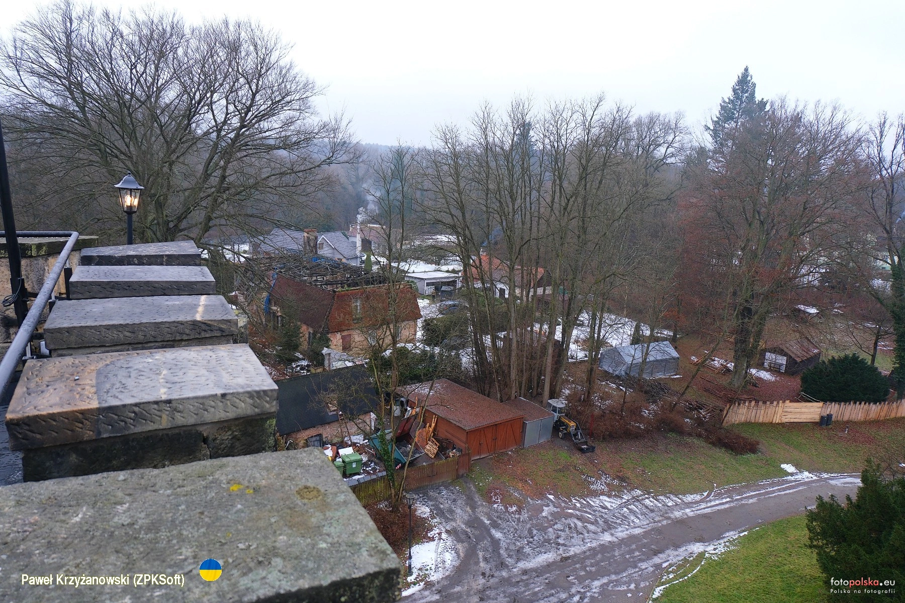 Polska woj. dolnośląskie powiat bolesławiecki Kliczków Centrum Konferencyjno-Wypoczynkowe "Zamek Kliczków" Wieża Jenny Widoki z wieży