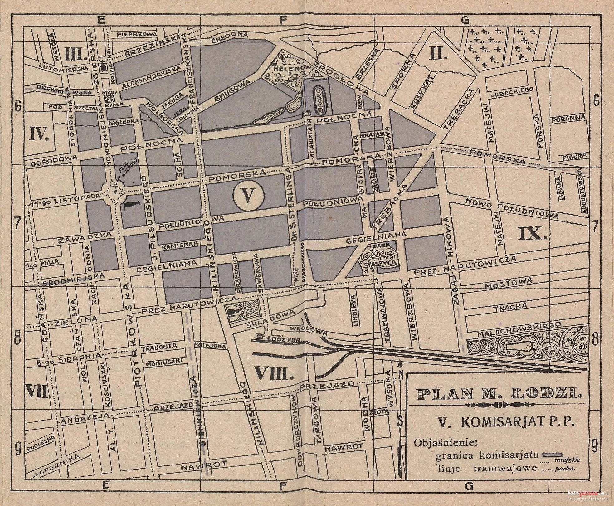 1933 , Plan Łodzi - obszar V komisariatu P. P. Źródło: Informator - przewodnik z 16 planami m. Łodzi, 1933Skomentuj zdjęcie |