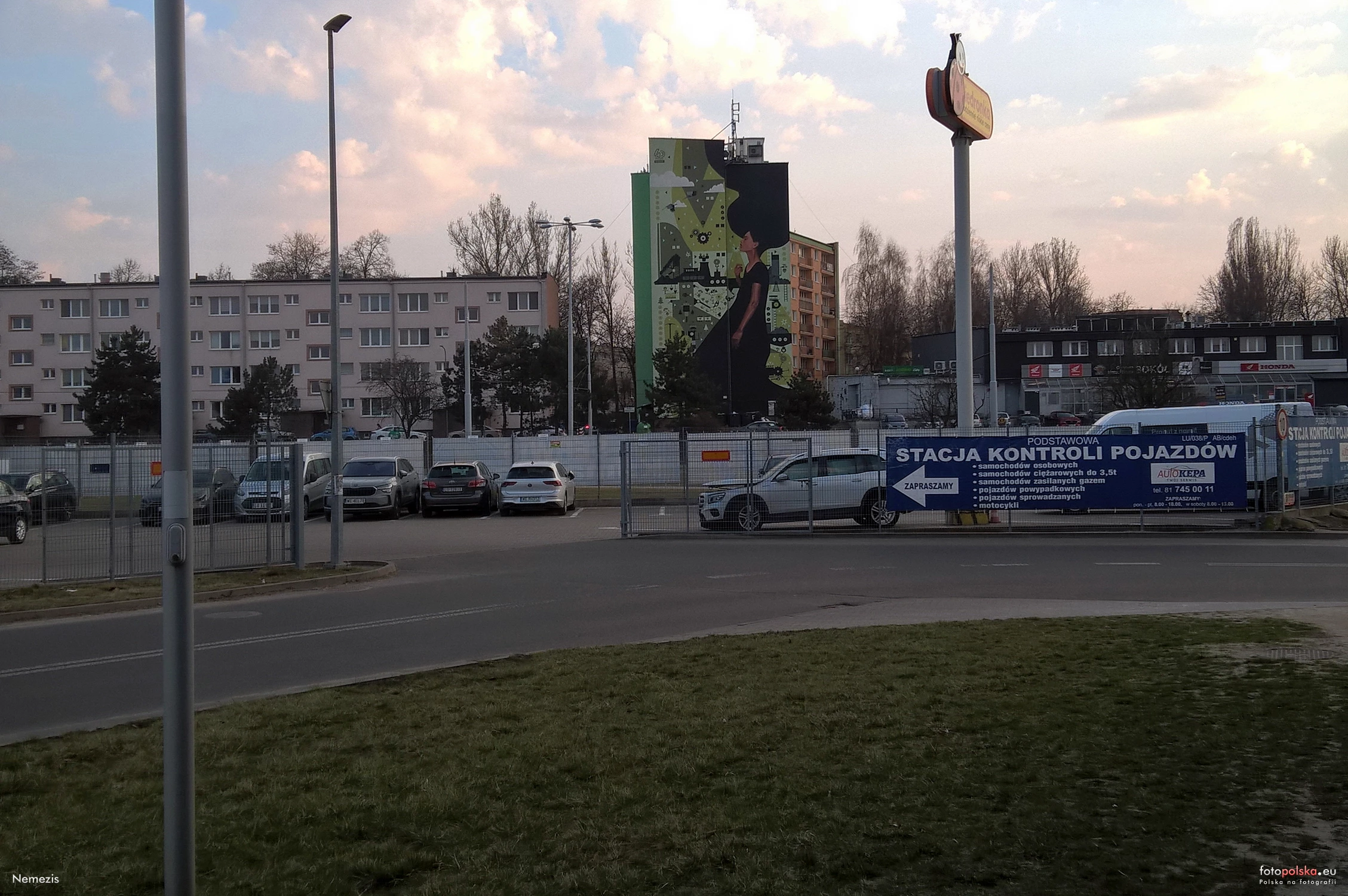 16 marca 2026 , Ulica Mełgiewska w Dzielnicy Tatary. Fragment wjazdu w kierunku parkingu E.Leclerc i wjazd z parkingiem firmy Kępa Auto-Centrum. W głębi od lewej blok mieszkalny ul. Montażowa 10, wieżowiec mieszkalny ul. Montażowa 12 z muralem na bocznej elewacji "Kopalnia blisko natury" i budynek ul. Montażowa 14 (z prawej w głębi).Skomentuj zdjęcie |