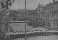 7 maja 1940 , Wizyta Gauleitera Greisera w Jarocinie. Na zdjęciu powitanie Arthura Greisera na rynku przez oddziały Hitlerjugend i Bund Deutscher Mädel.Skomentuj zdjęcie |