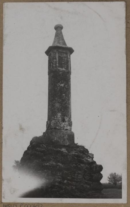 Słup ustawiono przy średniowiecznym trakcie wiodącym z Radłowa do Opatowa; na granicy będących wtedy częścią dóbr biskupów krakowskich Biskupic Radłowskich i wsi rycerskiej Zabawa. Słup ufundował kardynał Zbigniew Oleśnicki, zwierzchnik diecezji krakowskiej, by położyć kres sąsiedzkim zatargom. Jego budowa przypieczętowała podpisanie aktu prawnego ustalającego przebieg granicy między dobrami biskupimi a posiadłościami wsi Zabawy i Zdrochca.