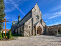 Kościół św. Tomasza Kantuaryjskiego więcej zdjęć (71) Atrakcja turystyczna Zbudowano: 1232 Dawniej: Kościół klasztorny cystersów Zabytek: 239/569 z 16.09.1971 Kościół św. Tomasza Kantuaryjskiego – trójnawowa bazylika z transeptem. Jako zakończenie budowy przyjmowana jest data konsekracji kościoła, rok 1232. Bryła kościoła zachowała się w nienaruszonym układzie. Front kościoła zdobi romański portal i rozeta. Wyposażenie świątyni pochodzi z okresu baroku i rokoka. Kościół klasztorny p.w. św. Tomasza Kantuaryjskiego w Sulejowie wzniesiony ze szlachetnego piaskowca szydłowieckiego, w starannie ciosanych blokach i ułożonych w regularne szychty, przedstawia budowlę sklepioną. Sklepienie znalazło podparcie w grubości murów i nieznacznie występujących skarpach. Romański portal głównego wejścia do kościoła mieści się w ścianie zachodniej, na osi nawy głównej, nad nim zaś umieszczono maswerk. Nad dawnym wejściem bocznym znajduje się romański tympanon z końca XII w. przedstawiający płaskorzeźbiony krzyż wczesnochrześcijański, po bokach którego jest słońce, księżyc i ptak jako symbole śmierci Chrystusa. Skrzydło zachodnie klasztoru przeznaczano na spiżarnie, składy oraz pomieszczenia dla braci i nowicjatu. Natomiast od strony północnej mieścił się ogród warzywno-owocowy. Skrzydło od strony południowej, z którego przetrwały jedynie partie murów i fragmenty piwnic, mieściło mieszkanie opata oraz kaplicę, w której uczestniczył we mszy świętej kardynał Geatano w 1597 roku, będący gościem opata Schenkinga, jako przedstawiciel papieża. Kapitularz w kościele sulejowskim z połowy XIII w., jest pomieszczeniem zbudowanym na rzucie kwadratu, nakrytym sklepieniem krzyżowo-żebrowym o czterech przęsłach wspartych tylko na jednej kolumnie. Konstrukcja kapitularza jest wykonana po mistrzowsku. Należy ją zaliczyć do najśmielszych przedsięwzięć sztuki sklepiania systemem krzyżowo-żebrowym na ziemiach polskich. Kapitularz mimo sklepienia ostrołukowego zachował cechy romańskie, takie jak: proporcje, kolumny, ornamentacja kapiteli i przezrocza. W krużganku kapitularza zaskakuje bogata kamieniarka zworników i wsporników o motywach heraldycznych. Występujące na wspornikach sklepiennych: orzeł jagielloński, Pogoń litewska i krzyż węgierski, upewniają pobyt Władysława Jagiełły w Sulejowie. W kapitularzu Ojcowie Cystersi po odzyskaniu swojej własności urządzili muzeum przeznaczone dla licznych turystów, wczasowiczów i młodzieży szkolnej. Znajdują się tu cenne eksponaty, takie jak: obraz Kazimierza Sprawiedliwego, obraz opata Schenkinga, unikalny tryptyk przedstawiający Trójcę Świętą z pierwszej połowy XVI w. oraz liczne szaty liturgiczne. Ołtarz główny z obrazem „Wniebowzięcie Matki Boskiej” wykonany został w 1788 roku przez Joannesa Millmana. Ambona wykonana z drewna, polichromowana, obrzeżona półkolistą balustradą, zwieńczona jest baldachimem z piramidą chmur i klęczącą postacią św. Tomasza Kantuaryjskiego (Tomasza Becketa z Canterbury) w zakonnym stroju. Po obu stronach nawy głównej umieszczone są stalle, dwukondygnacyjne z 2 poł. XVIII w. o bogatej dekoracji snycerskiej zaplecków i przedpiersi. Pierwszy rząd zakończony jest siedziskiem dla przeora – latus prioris, z wysokim zapleckiem, zwieńczonym szczytem z rocaillów i osobnym wejściem. W rogach wiszą obrazy w pięknych rokokowych asztach przedstawiające papieży: Benedykta XII, Aleksandra III, Eugeniusza III i Urbana IV. Organy kościoła cysterskiego w Sulejowie powstały w XVII w. i poddawane były udoskonaleniom. Wykazują one podobieństwo do organów kościoła cysterskiego w Wąchocku i być może są dziełem tego samego organmistrza i warsztatu snycerskiego, najprawdopodobniej zakonnego. Tradycje organmistrzowskie szczególnie mocno zakorzeniły się w Zakonie Cystersów. Posiadali warsztaty zakonne m.in. w Szczyrzycu. Budowali organy o przewadze głosów metalowych, mając własne źródła zaopatrzenia w cynę i ołów. Inicjatorem ich budowy był zapewne opat Stanisław Zaremba. Instrument posiada 22 głosy (2 klawiatury ręczne + 1 nożna) z cymberblastem, tj. wirującą gwiazdą z dzwonkami. W 1784 roku był naprawiany przez znanego organmistrza z Brzegu – Chrystiana Wilhelma Schefflera. na centralnej wieży pozytywu stoi rzeźba Matki Boskiej Apokaliptycznej. Wielkość i podobieństwo organów wąchockich i sulejowskich mogła wynikać z identycznych wymiarów obu cysterskich kościołów. Instrumenty usytuowane są na prawie identycznych chórach muzycznych, ukształtowanych w formie podkowy. Balustrada chóru sulejowskiego jest dekorowana w kwaterach malowidłami o tematyce emblematycznej. Obrazy mogły powstać prawdopodobnie w czasach opata sulejowskiego Stefana Sitarskiego (zm. w 1686r.), którego herb Abdank znajduje się w barokowym kartuszu pod pozytywem. Emblematy stały się gatunkiem stojącym na pograniczu poezji i malarstwa. Spotykano je także we wnętrzach kościelnych: stallach, ołtarzach, feretronach, czy jak w przypadku Sulejowa, na balustradzie chóru muzycznego. malanowicz.eu (fantom) Zespół klasztorny cystersów więcej zdjęć (94) Atrakcja turystyczna Zbudowano: XII w. Zabytek: 569 oraz 429 Strona opactwa Hotel Podklasztorze - ul. Opacka więcej zdjęć (518) |