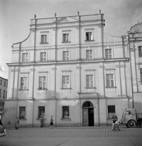 Ostatnia wojna nie oszczędziła tego budynku, wypalony legł w gruzach w stanie nienadającym się do odbudowy. W 1954 roku architekci rekonstrukcji Rynku zbudowali tu nowy dom od fundamentów, odtwarzając niemal wiernie wygląd obiektu klasycystycznego z XIX wieku. I takim go dzisiaj mamy.